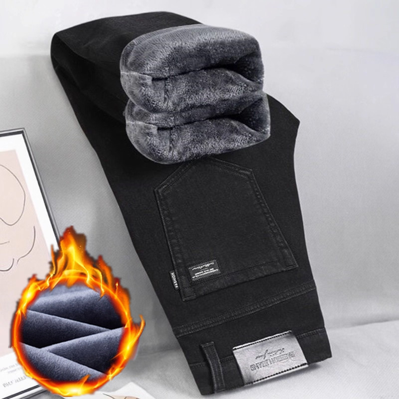 冬季加绒加厚牛仔裤男士保暖长裤