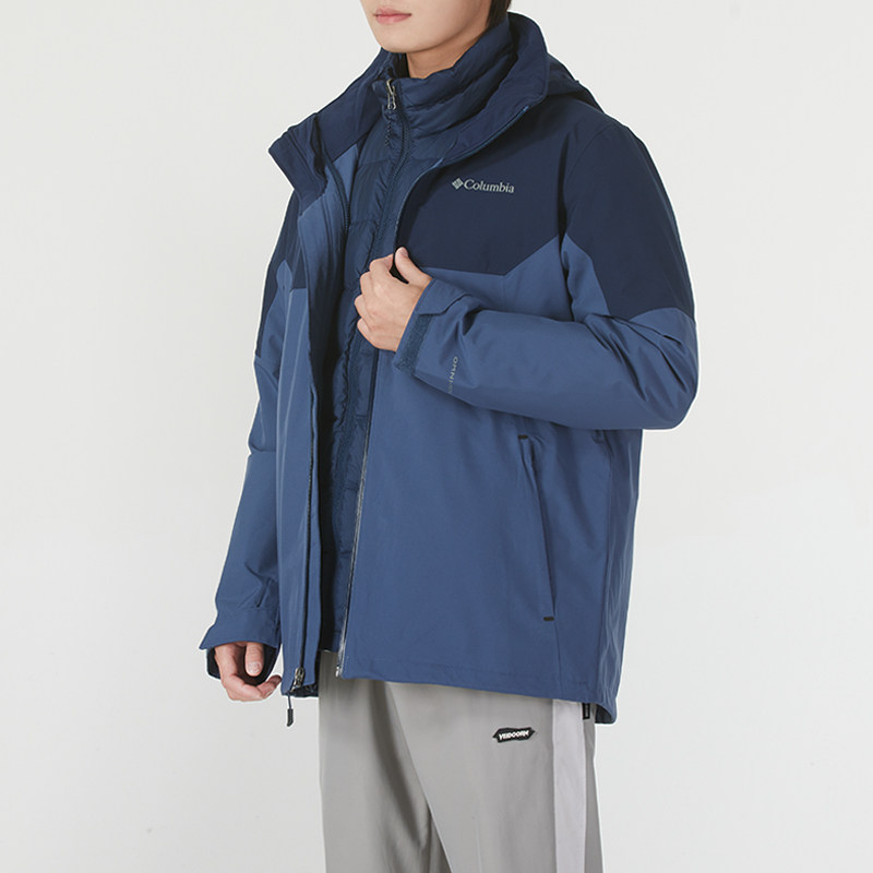 Columbia哥伦比亚羽绒服三合一冲锋衣男服户外保暖连帽舒适棉羽