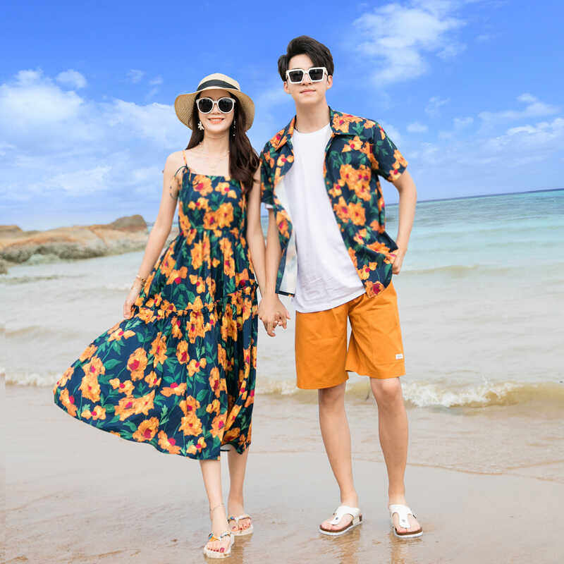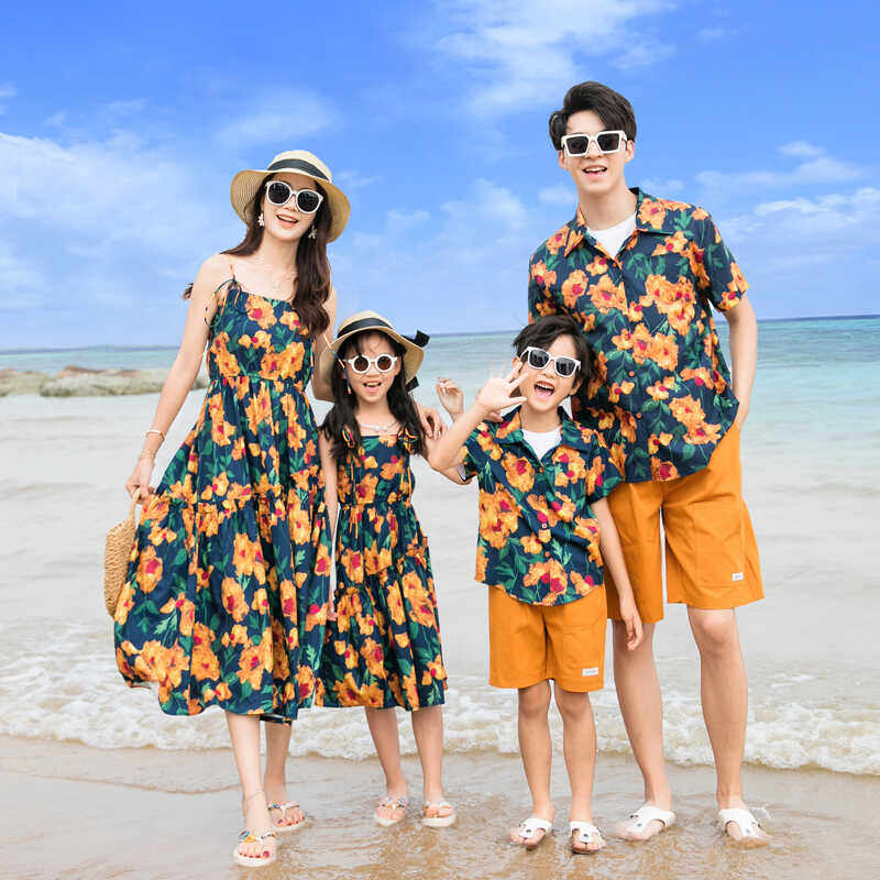 海边度假亲子装夏季一家三口四口三亚沙滩母女连衣裙父子短袖衬衫