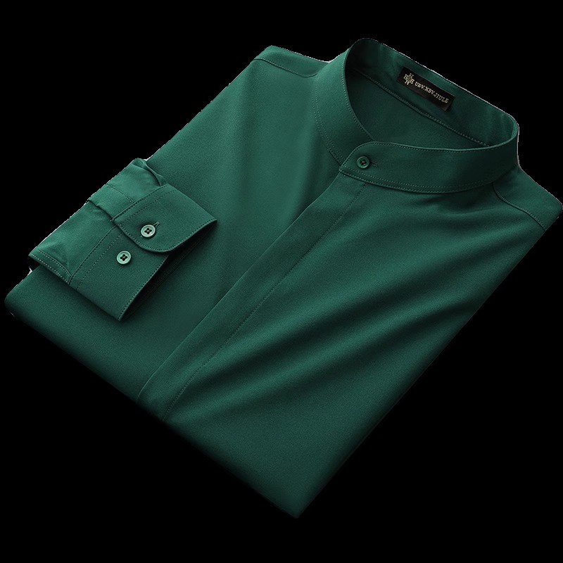 高级感暗扣立领衬衫男士长袖2024春季新款亨利领休闲免烫衬衣外套