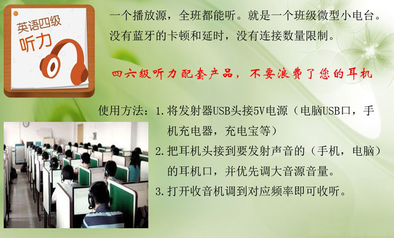 FM调频收音机发射器英语四六级听力耳机专用46级校园频率多人接收