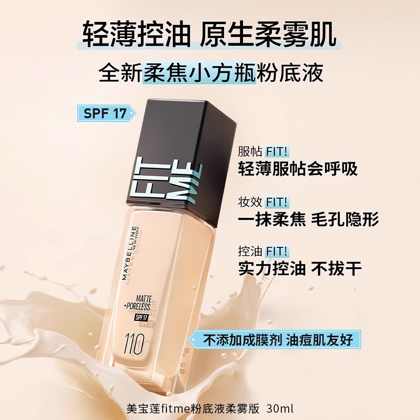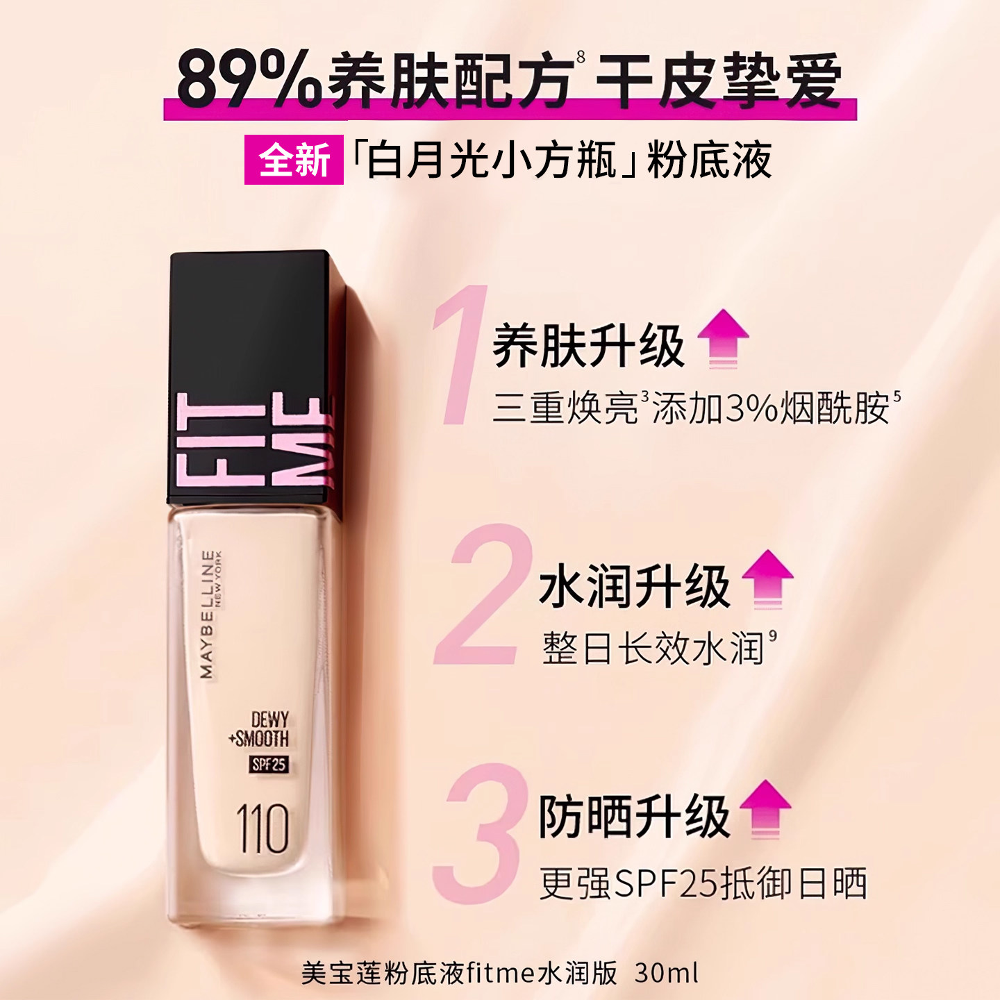 美宝莲粉底液白月光小方瓶自然遮瑕控油隔离保湿持久女官方正品