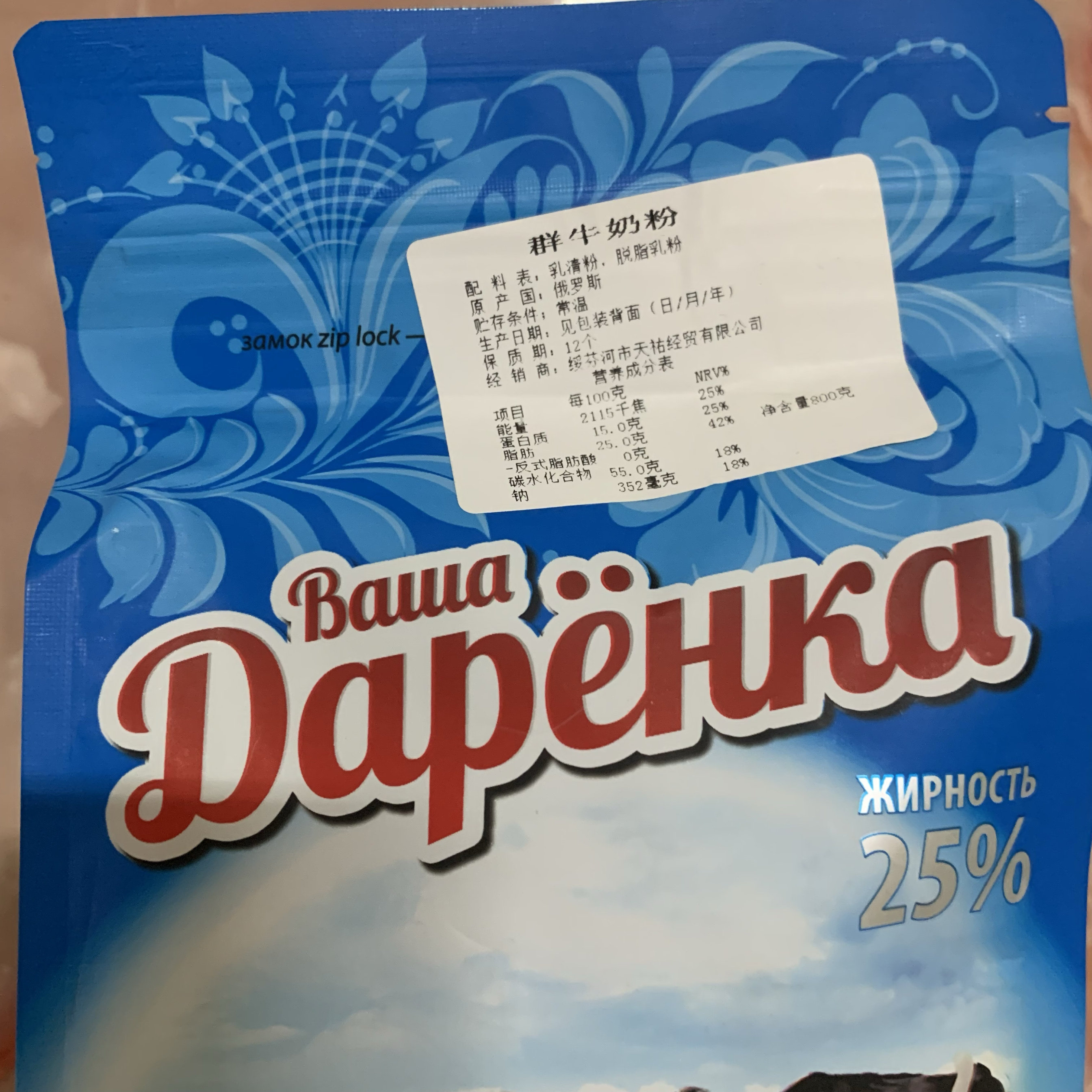 无中文包装(俄罗斯人喝的)骆驼奶粉老羊大花群牛蓝黄袋俄罗斯奶粉
