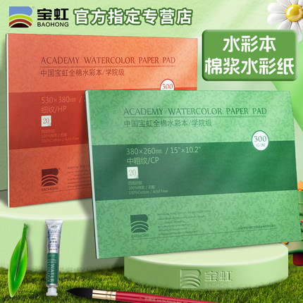 宝虹水彩本纸300g水彩画本4K8K棉浆中粗细纹A3A4水彩纸绘画本水彩画的纸方形水彩本手绘涂鸦美术生专用水彩本