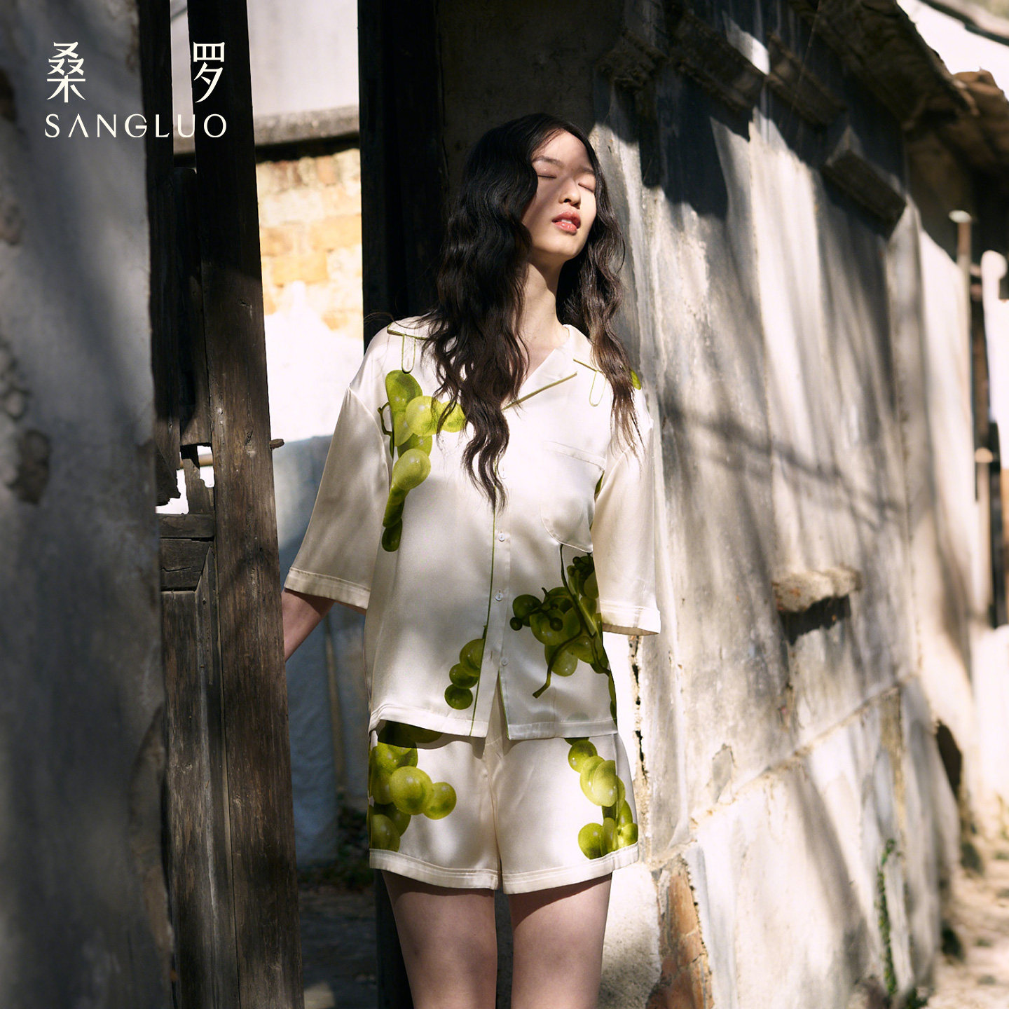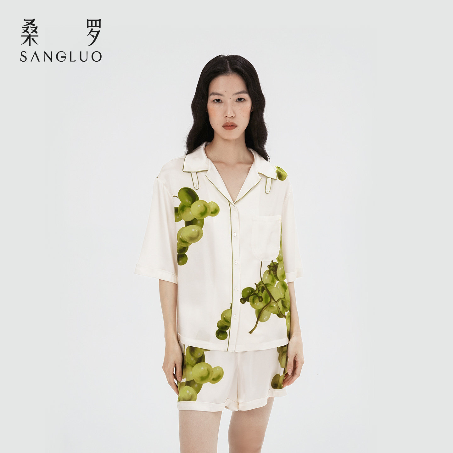 桑罗葡萄系列真丝睡衣女士短套装25年春夏新品可外穿家居服情侣款