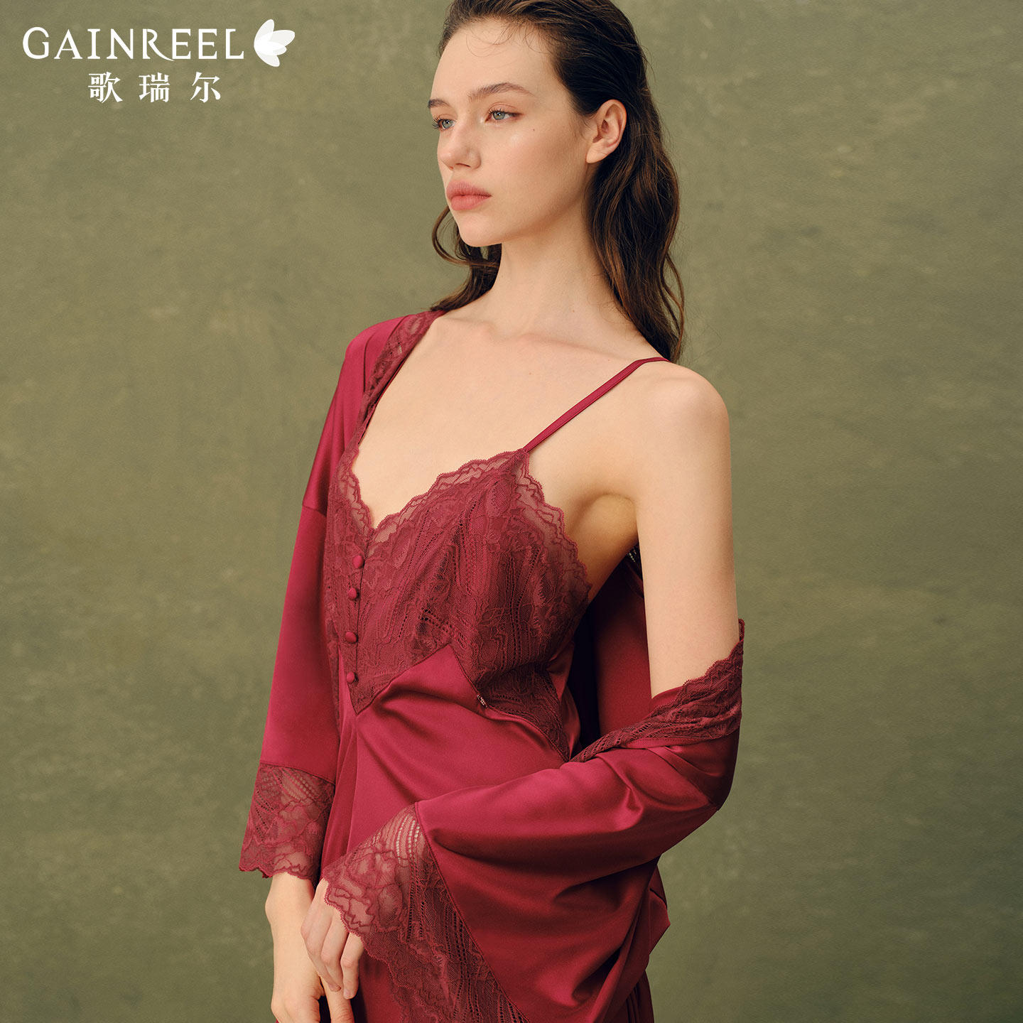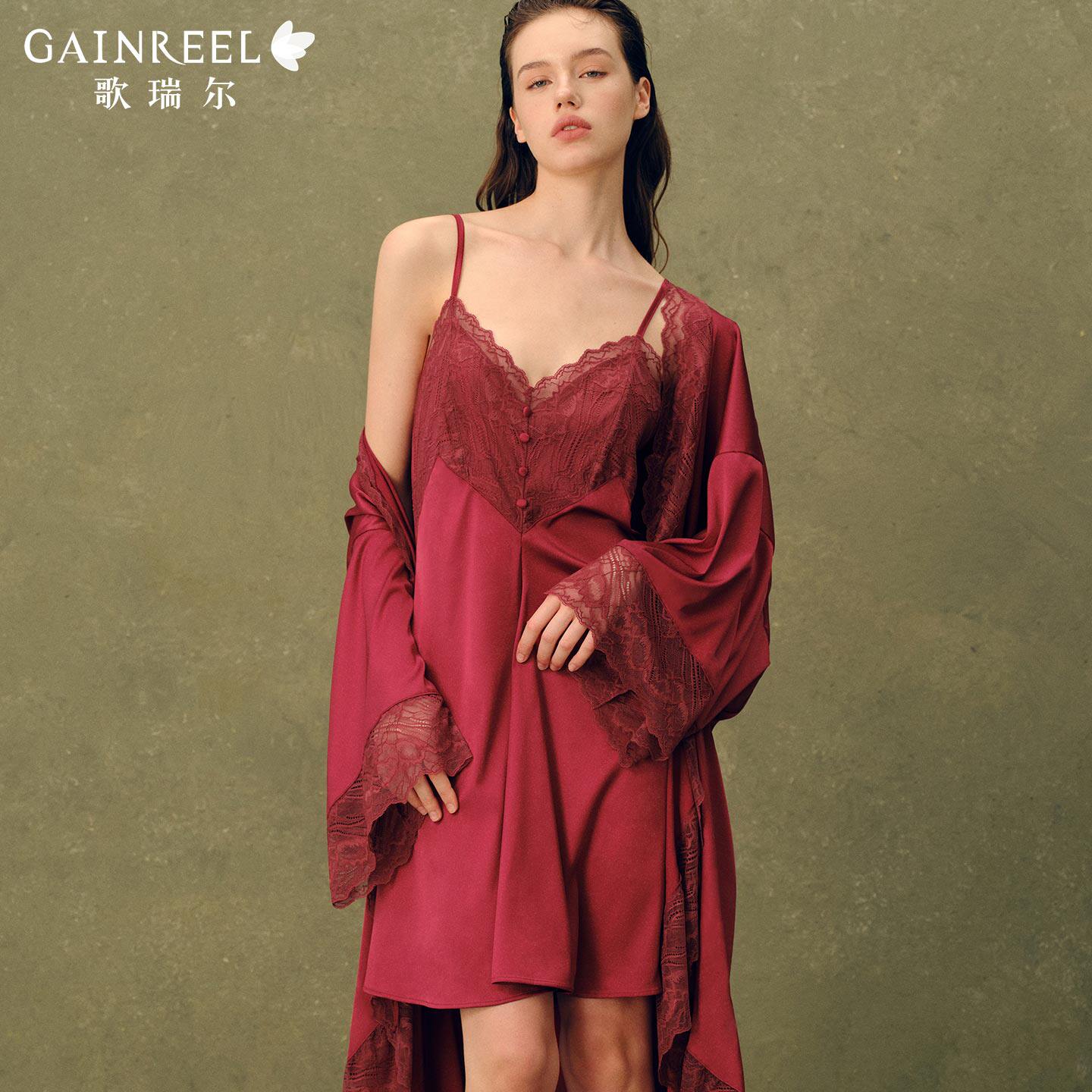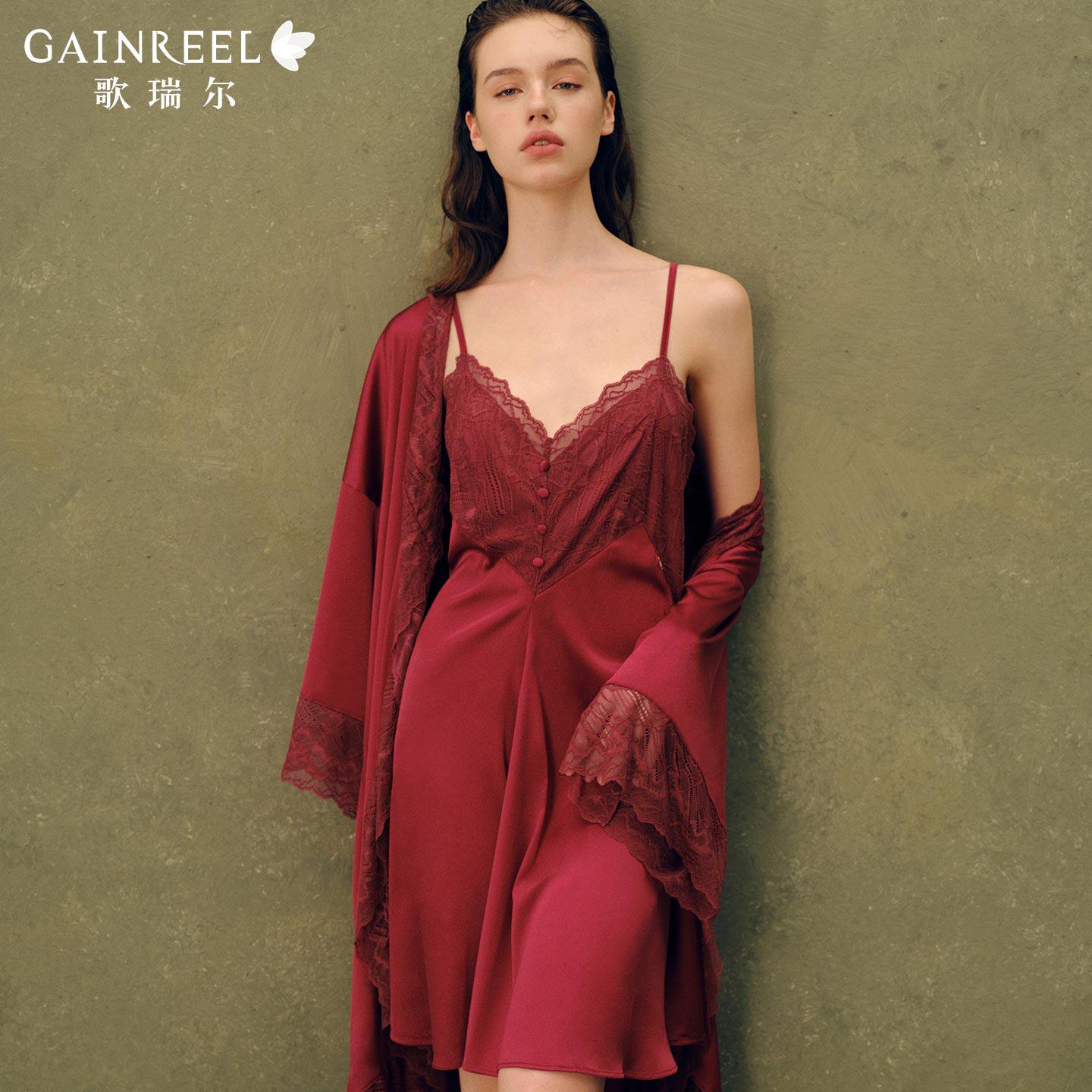 歌瑞尔红色性感蕾丝睡衣女本命年吊带睡裙睡袍可外穿家居服套装