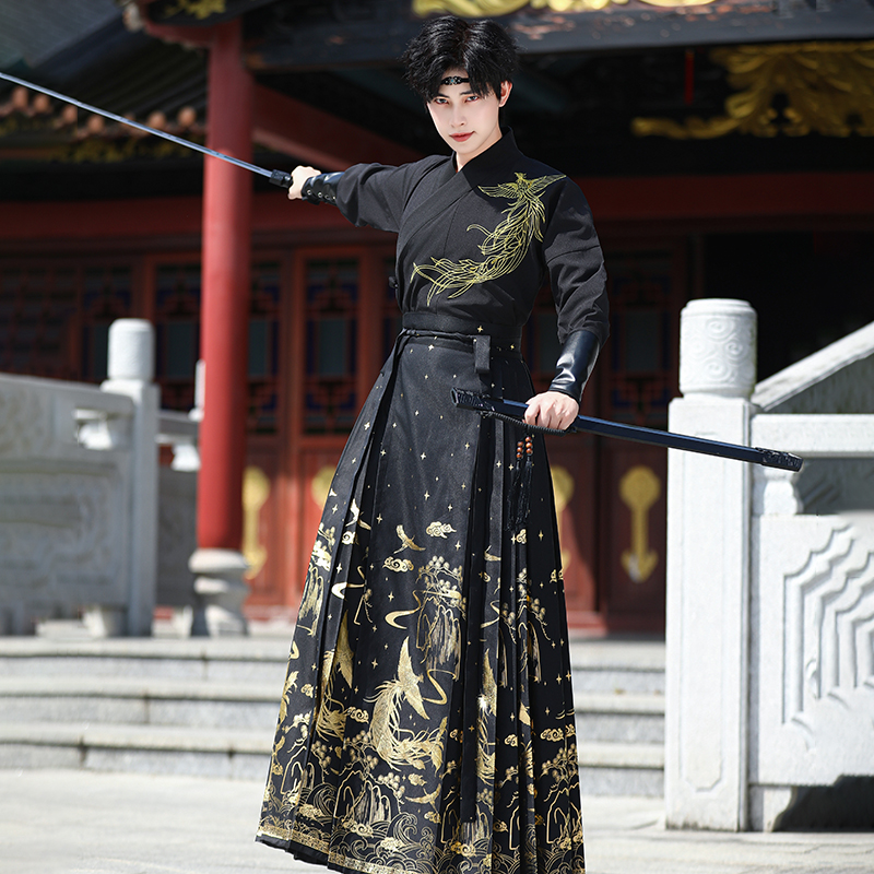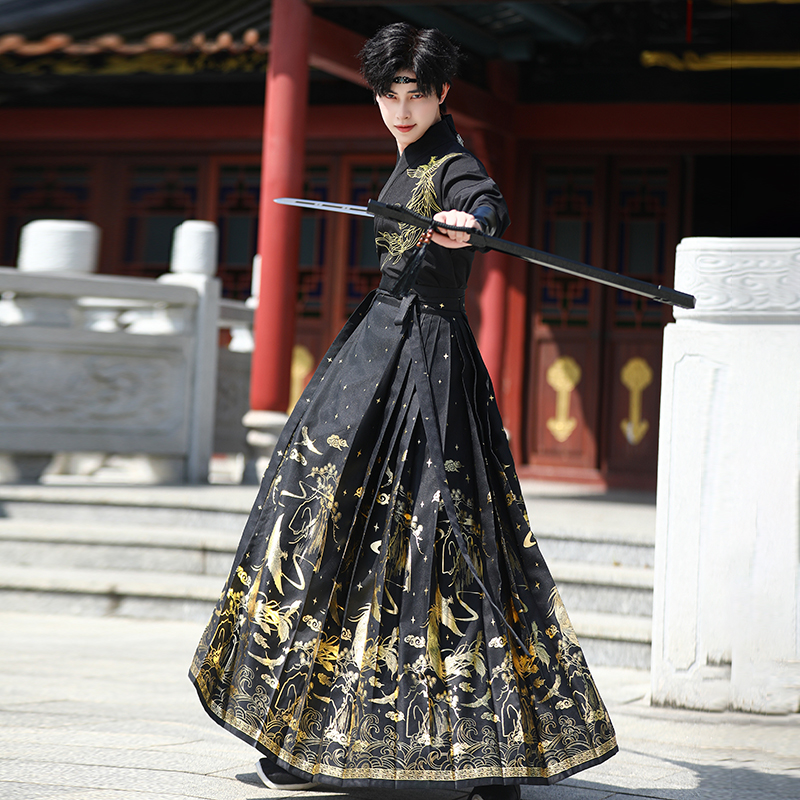 新款原创汉服男中国风刺绣交领上衣烫金马面裙帅公子武侠风cp套装