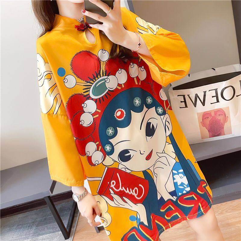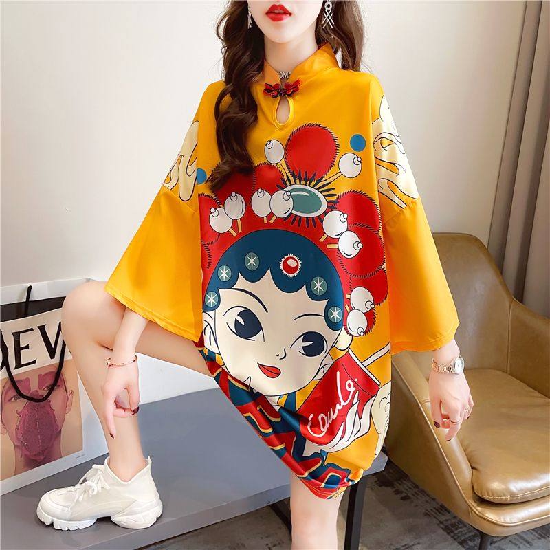 中国风短袖t恤女大码女装宽松韩版2026新款新中式改良旗袍连衣裙