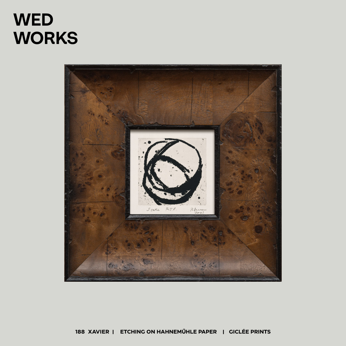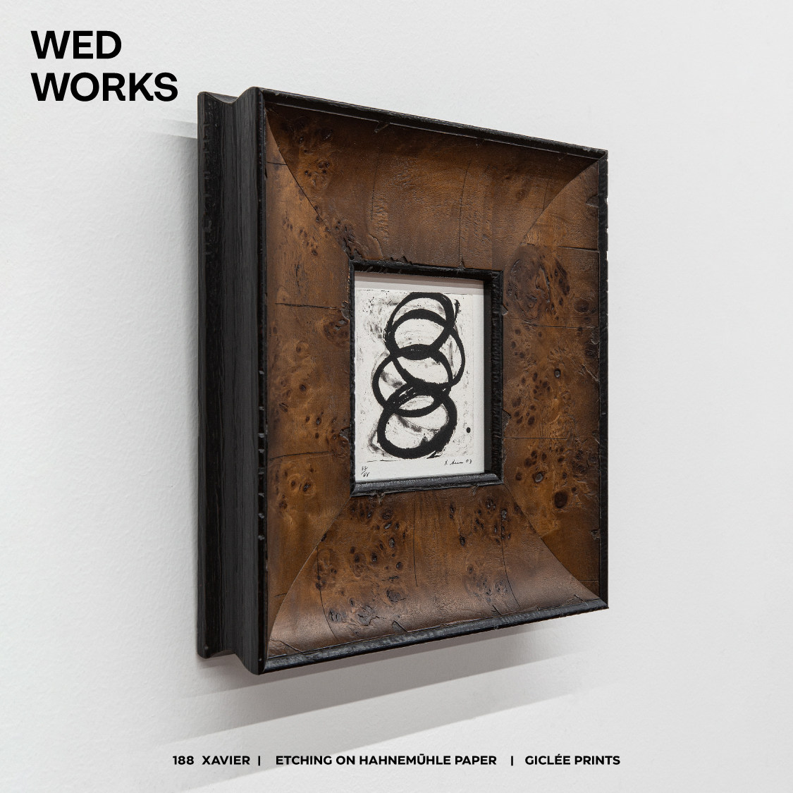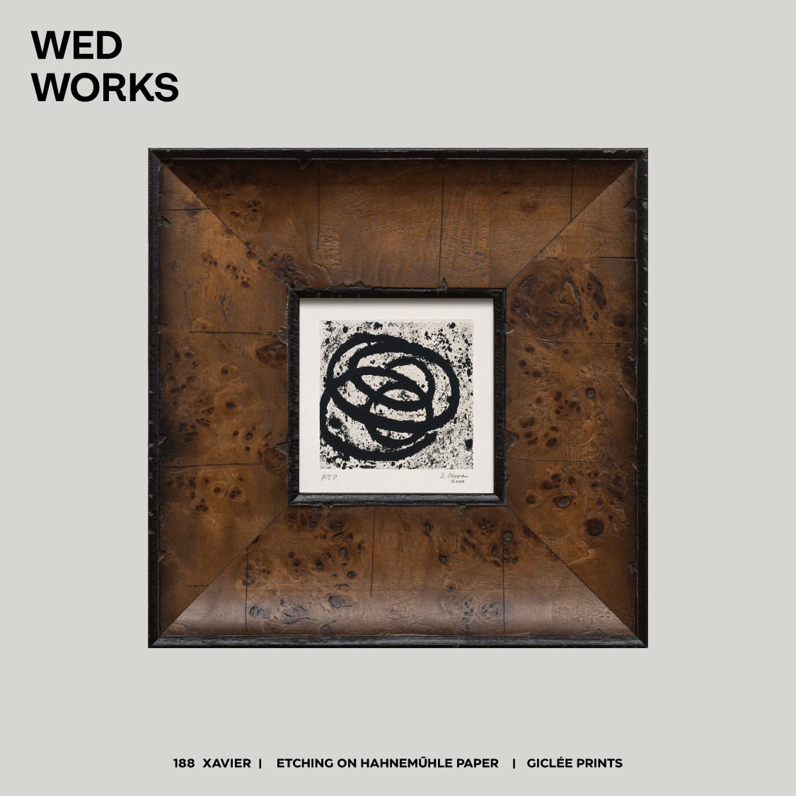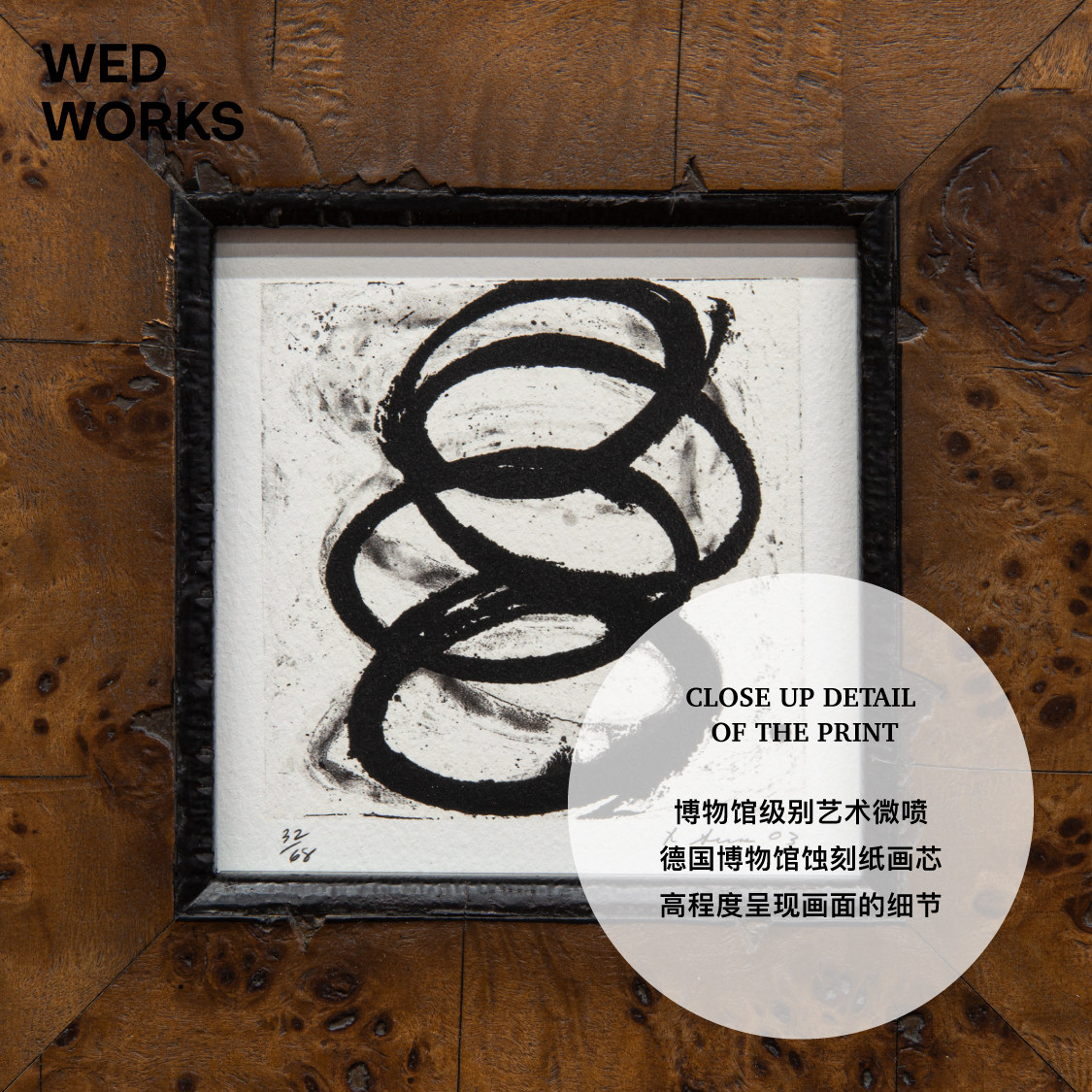 WED WORKS 小众中古风重工实木框抽象线条单色装饰画 咖啡厅挂画