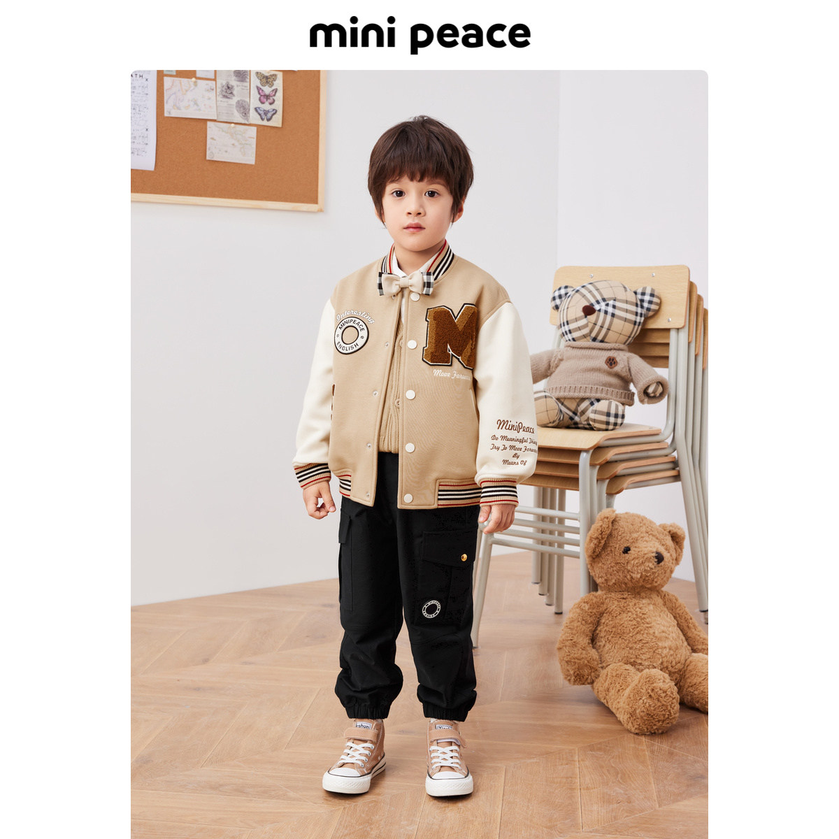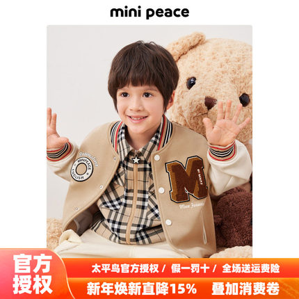 【专柜同款】MINIPEACE太平鸟童装男童棒球夹克棕色秋装儿童外套