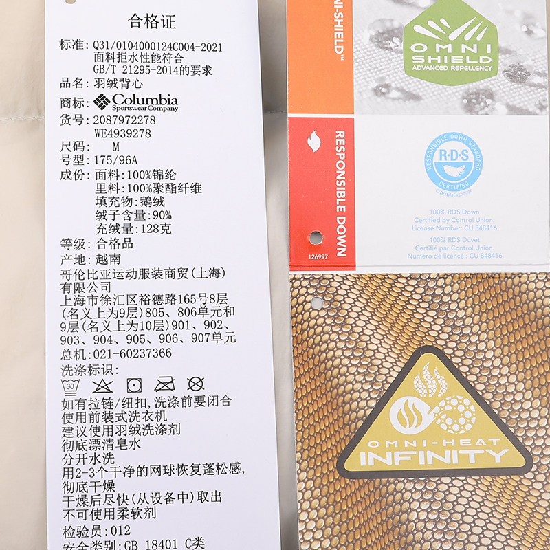 哥伦比亚金点热能700蓬鹅绒马甲