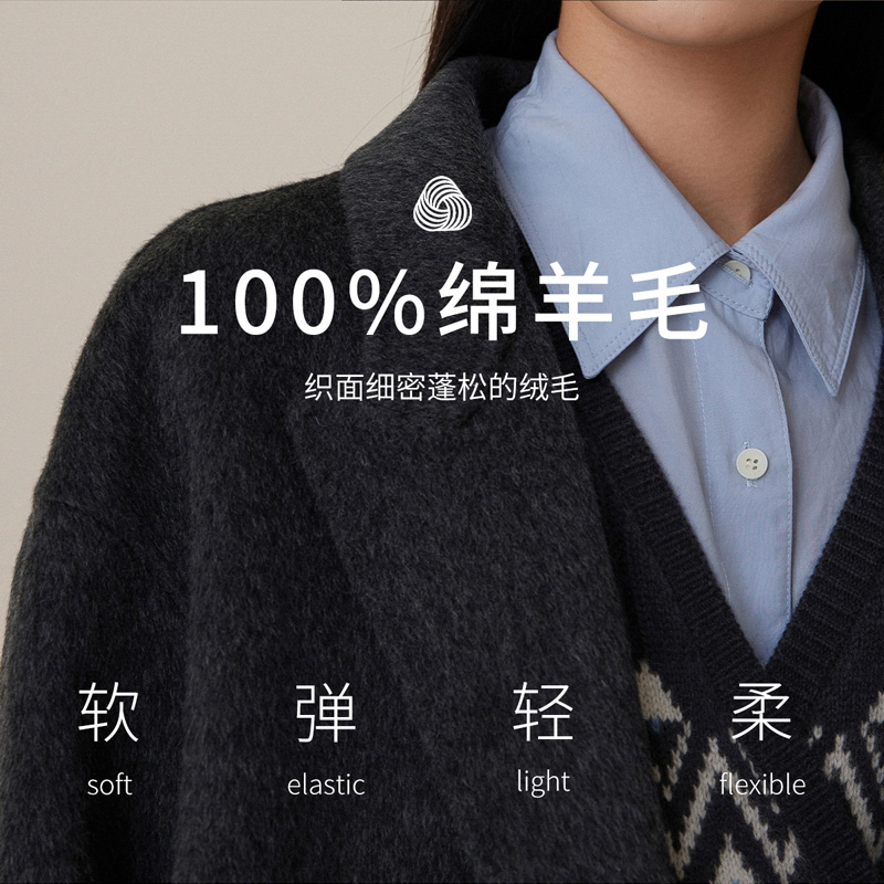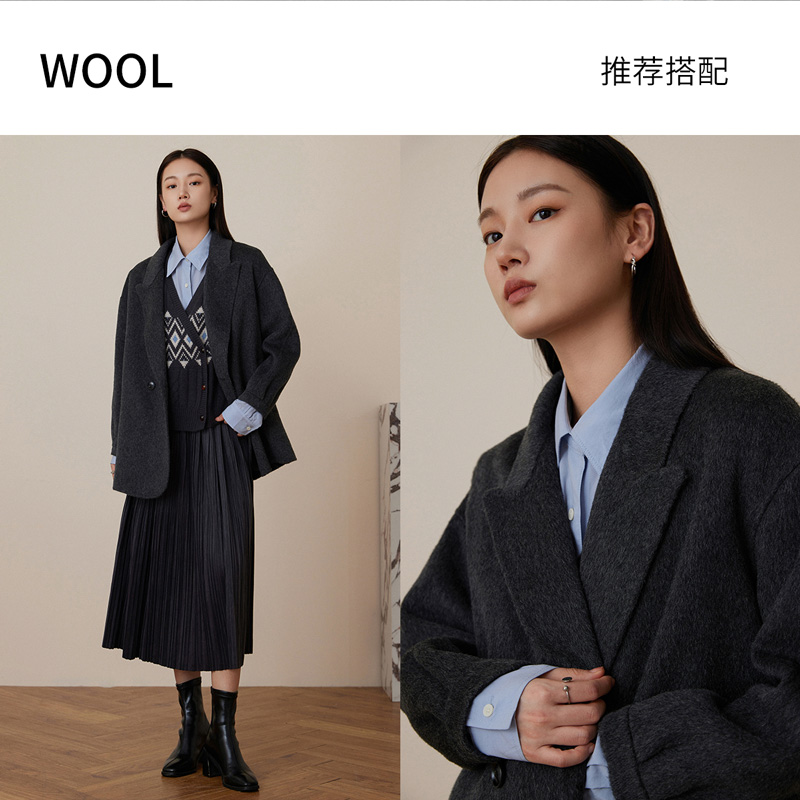 IVYKKI艾维2023冬季新款短款毛呢大衣时尚气质西装绵羊毛外套女士