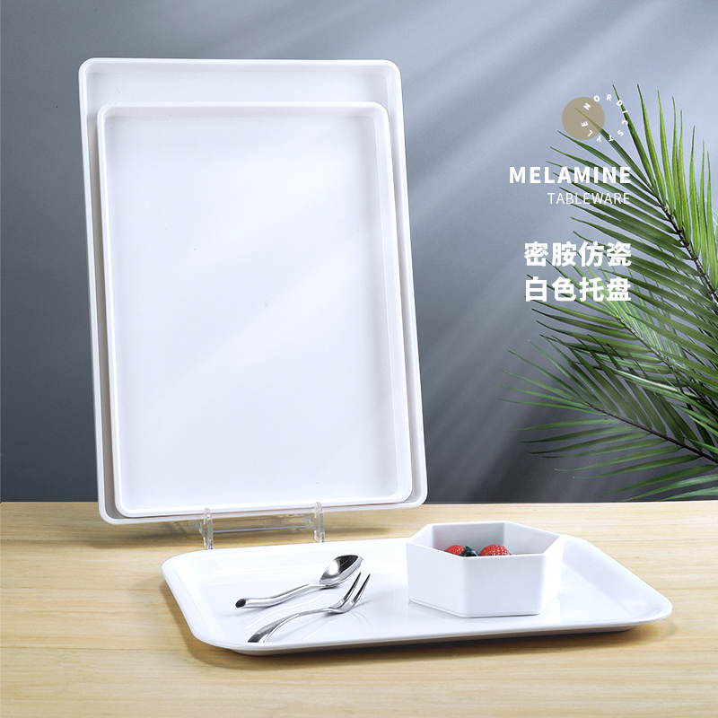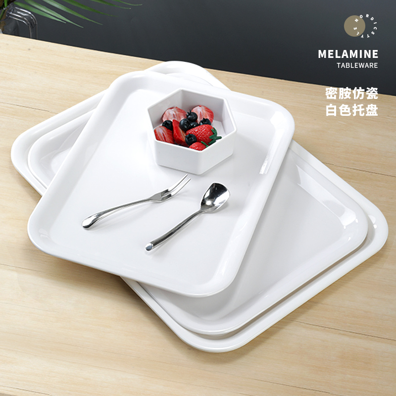 密胺托盘长方形白色塑料茶杯水杯托盘水果盘蛋糕面包展示托盘商用