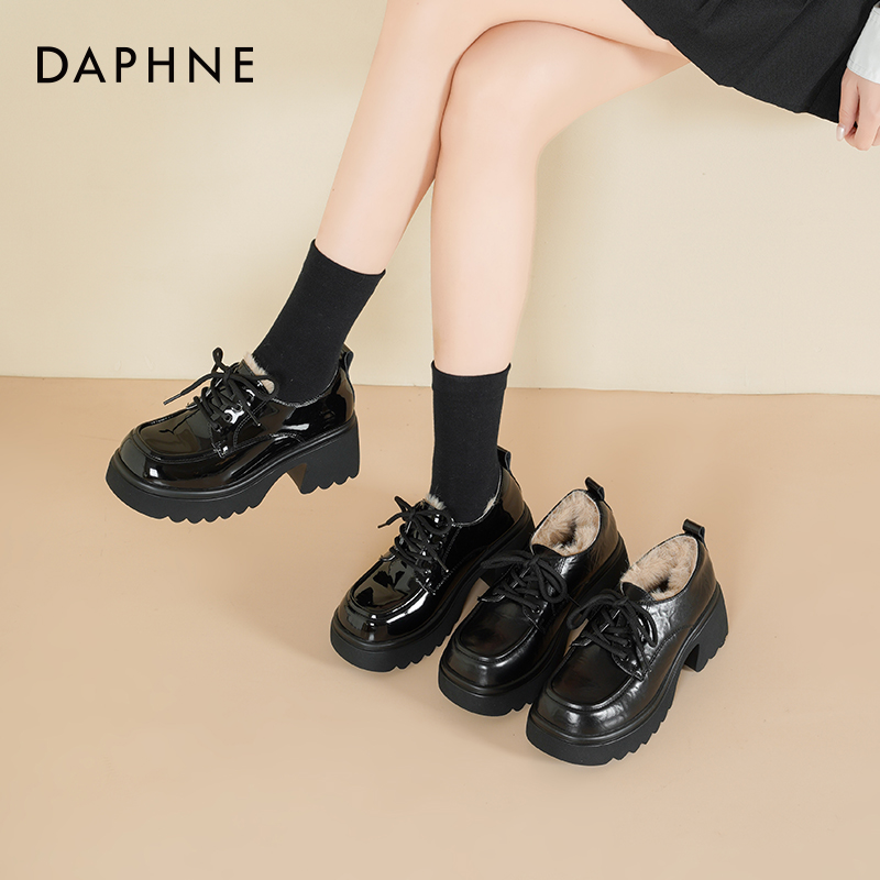 达芙妮厚底乐福鞋加绒小皮鞋单鞋