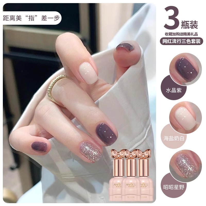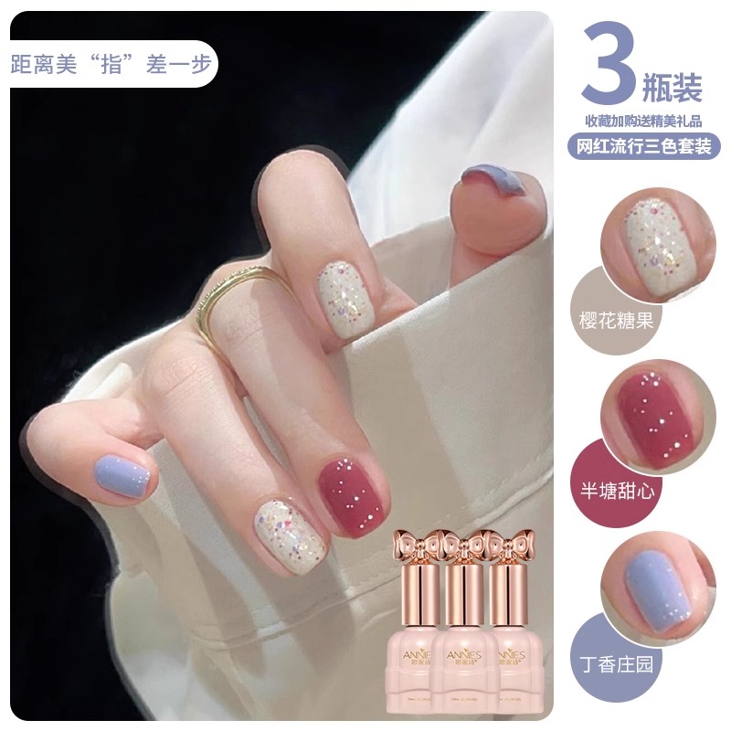 网红百搭天空蓝指甲油胶2025年新款显白蓝色爆闪亮片美甲三色套装