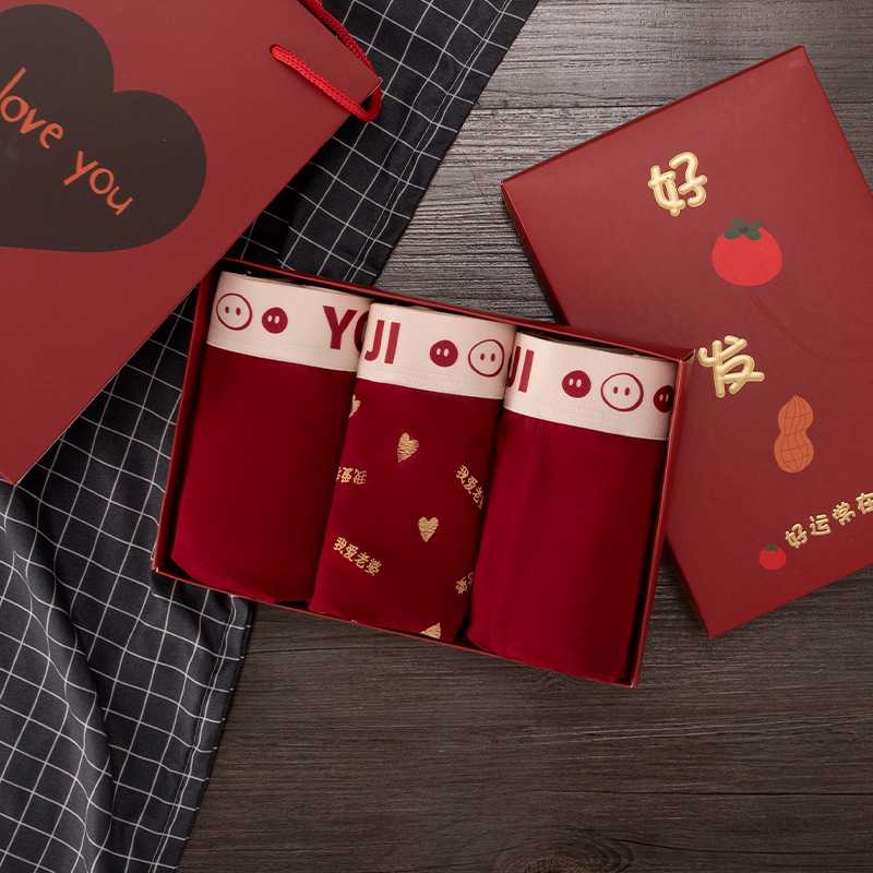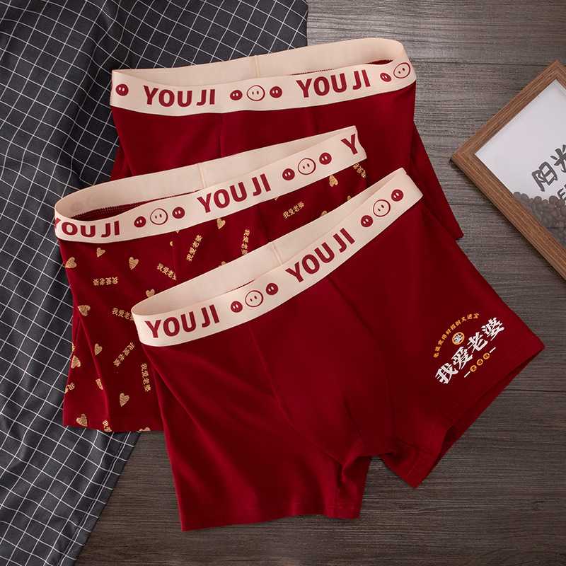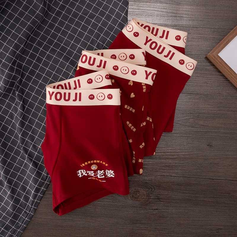 新款直销爆品爆款红色男士内裤平角裤棉质结婚本命年大红我爱老婆