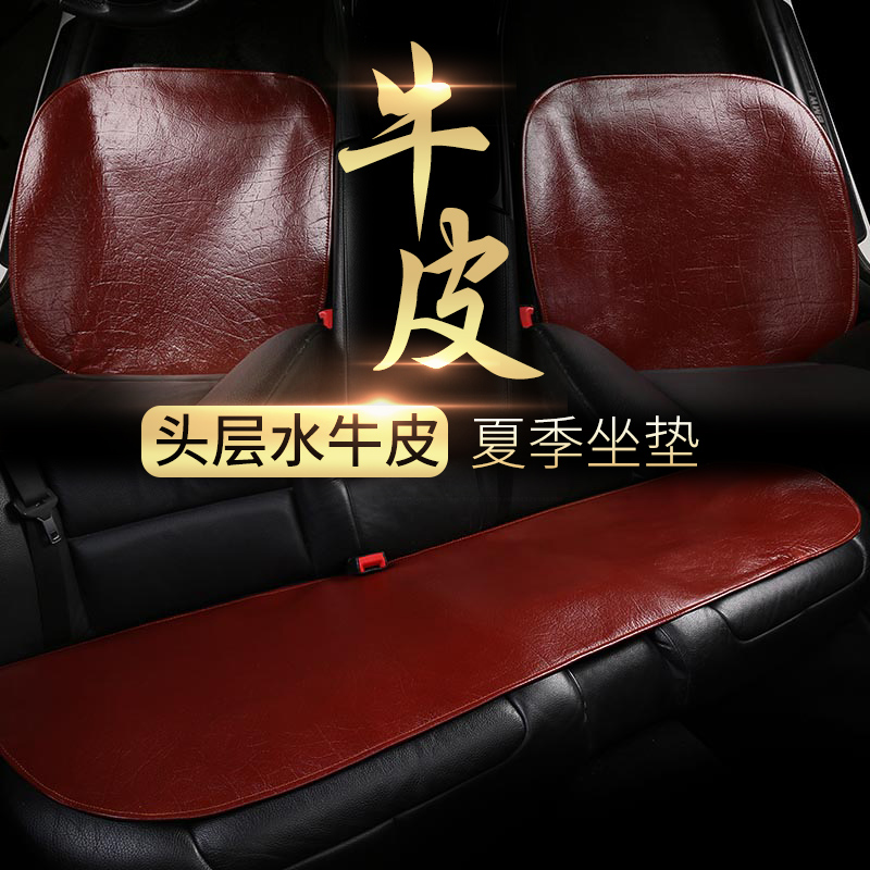 头层水牛皮汽车坐垫夏季真皮牛皮凉席垫三件套无靠背单片车用凉垫