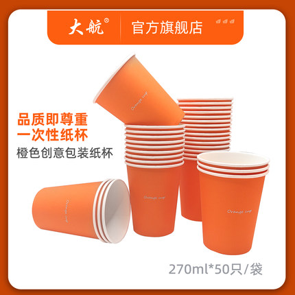 大航270ml一次性包装杯朱膘橙色加厚杯子一次性水杯家用整箱发货