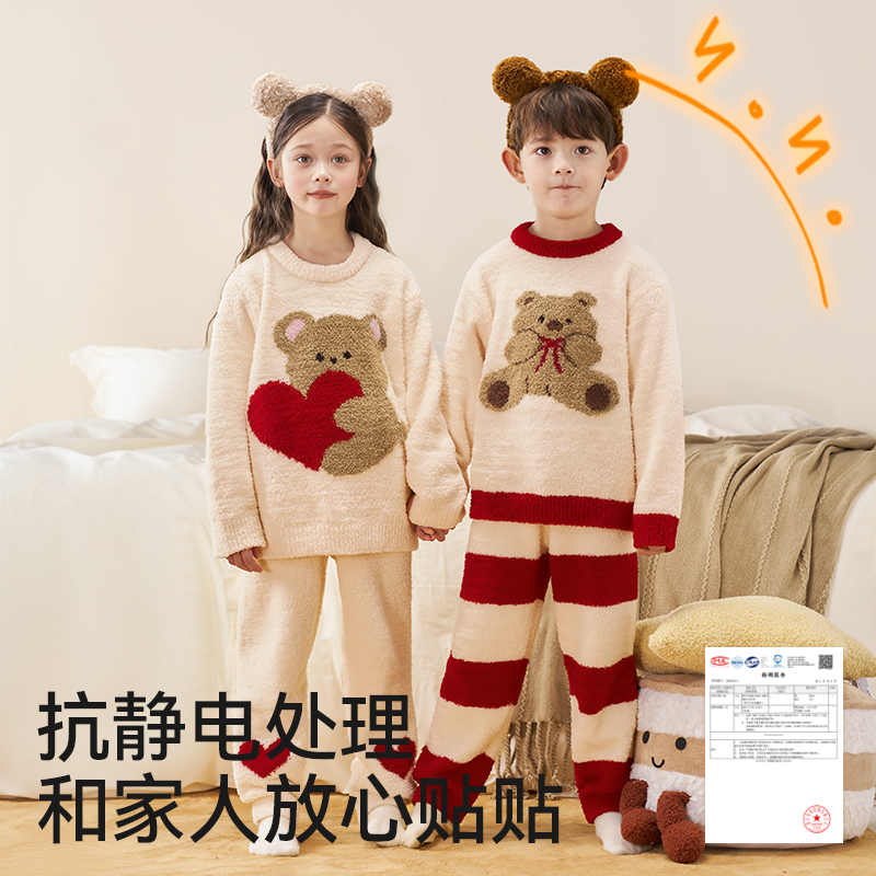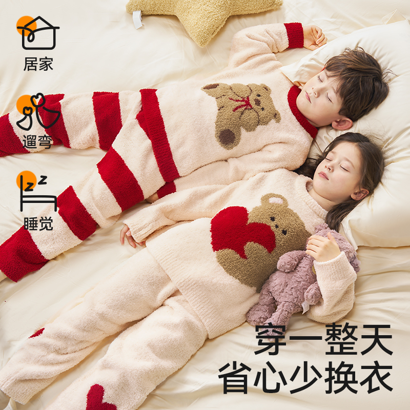 儿童睡衣秋冬加厚半边绒男女童家居服加绒珊瑚绒宝宝保暖抗菌套装