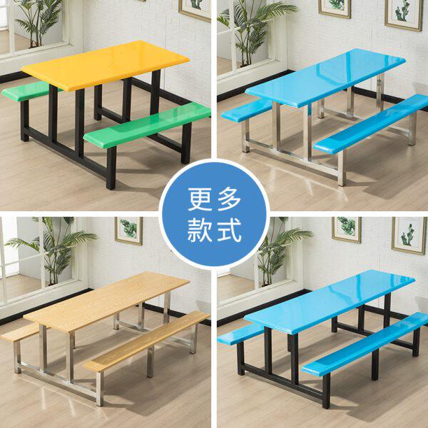 不锈钢餐桌学生员工公司食堂餐桌椅组合 4人6人8人连体快餐组合