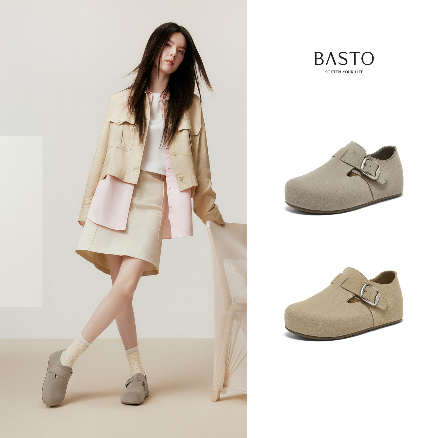 百思图2026秋季新款商场同款勃肯鞋时尚复古女单鞋B9033AM6