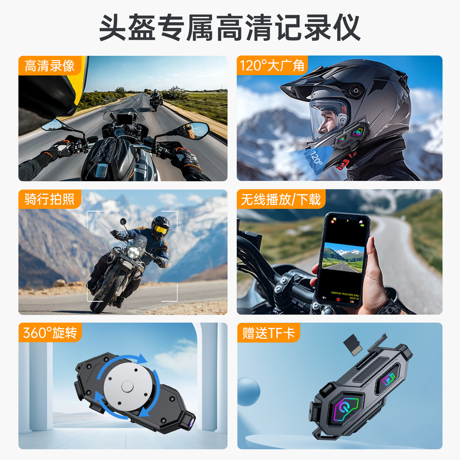 摩托行车记录仪WIFI手机互联1080P防水音乐蓝牙FM对讲耳机一体机