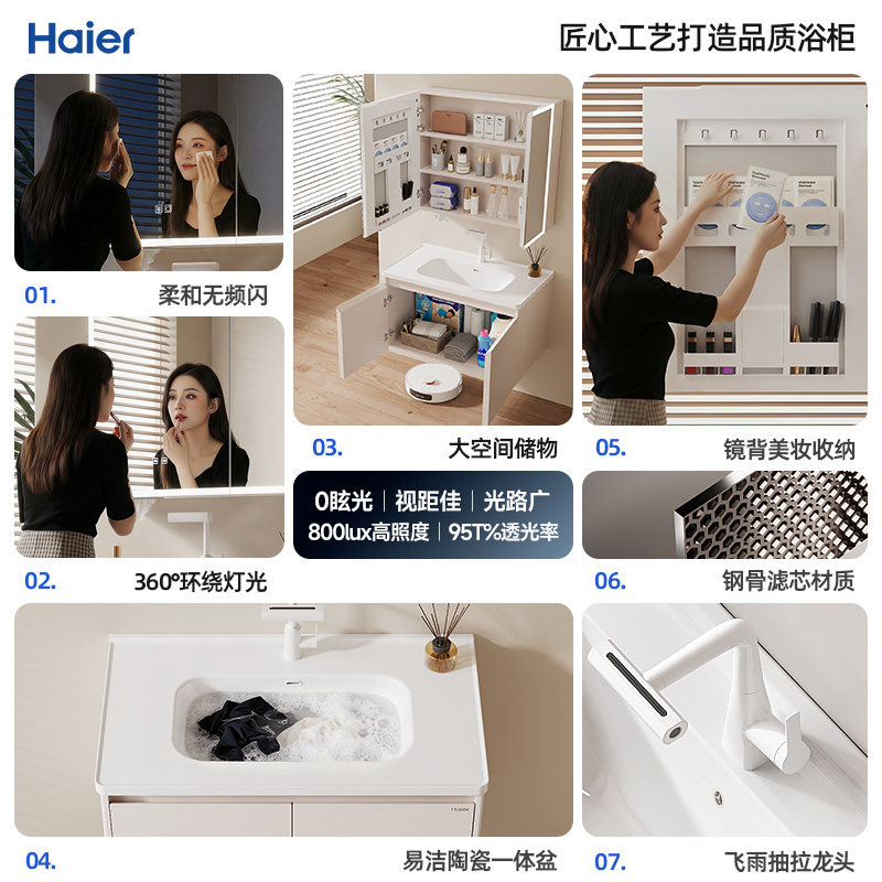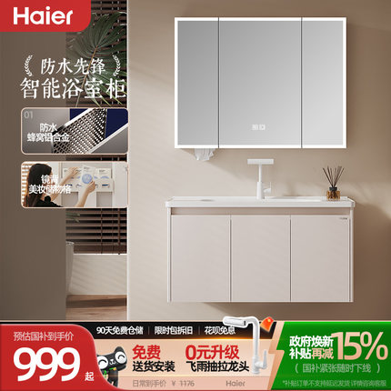 海尔蜂窝铝太空铝合金浴室柜组合陶瓷一体盆美妆镜柜卫生间洗漱台