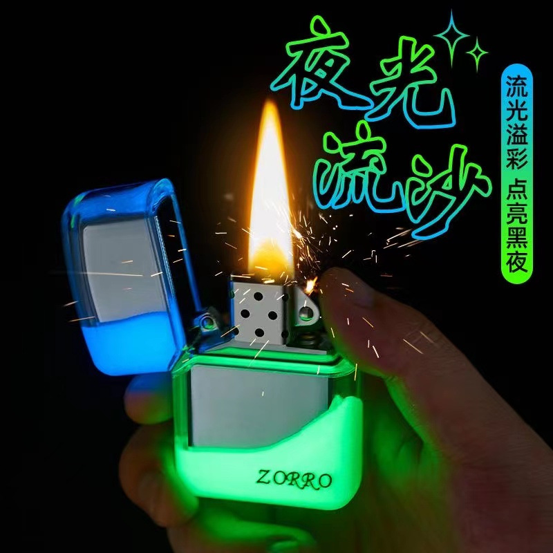 潮男佐罗ZORRO火机复古夜光流沙