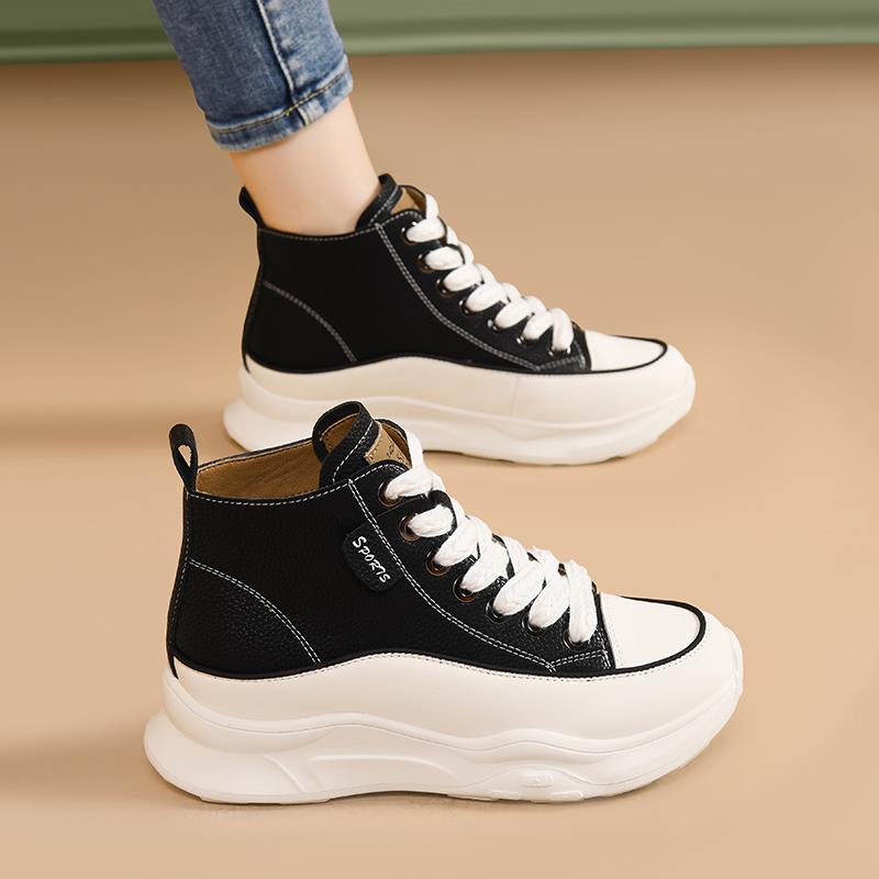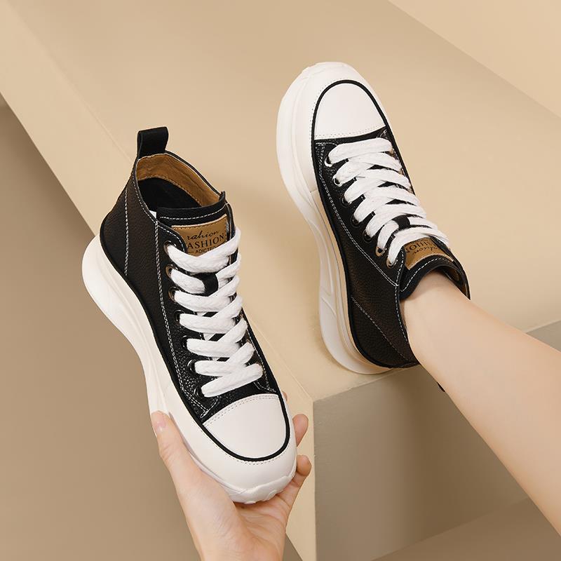 秋冬厚底帆布鞋女2025季新款增高小个子休闲运动鞋高帮松糕1005u