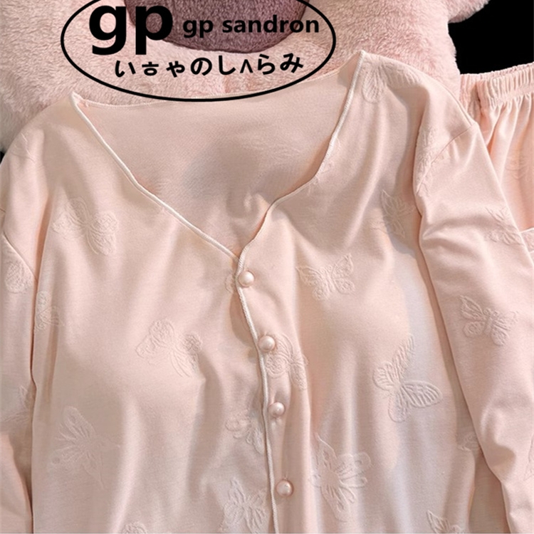 日本gp带胸垫一体睡衣女款纯棉长袖春秋季甜美粉色高级感家居服