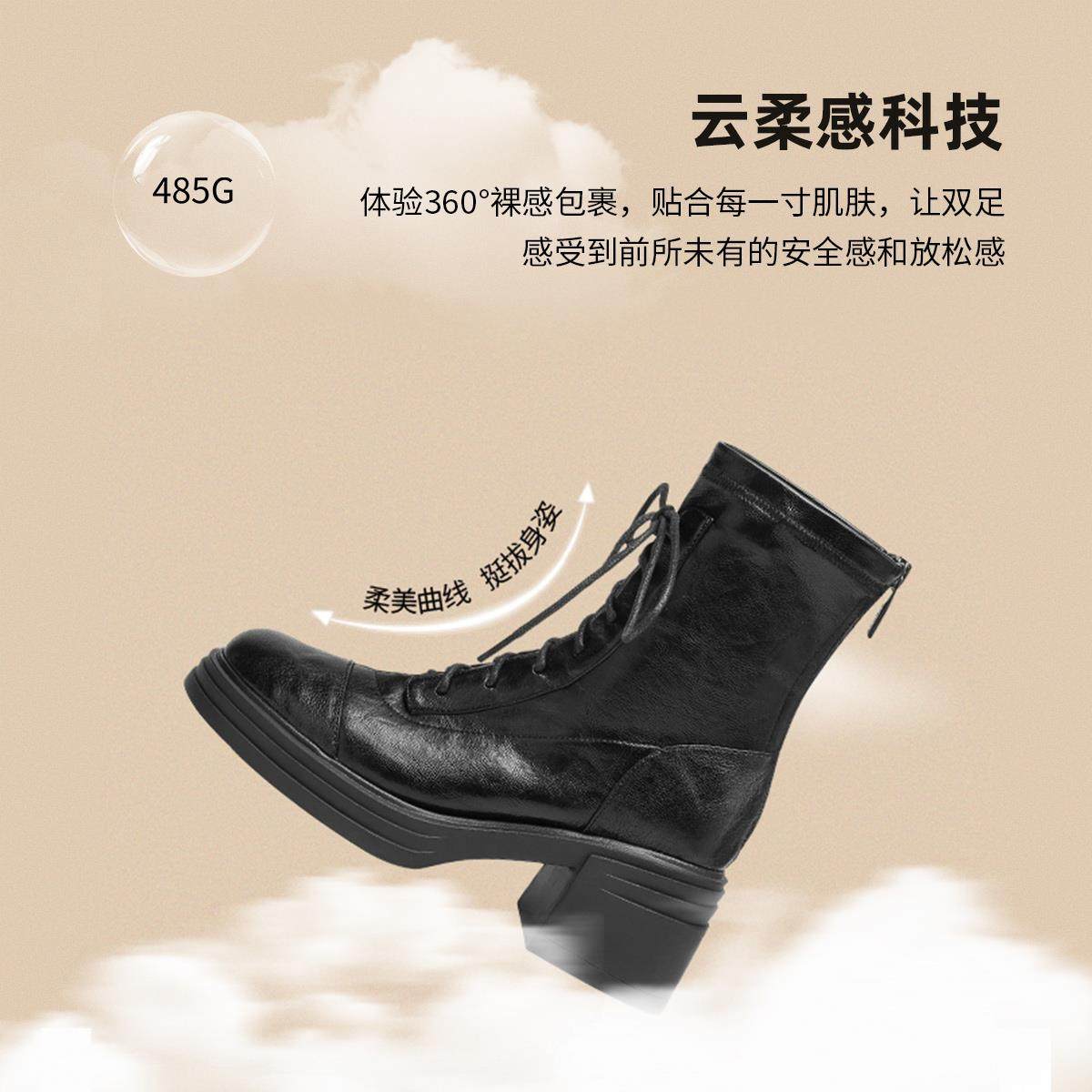 星期六新款英伦系带粗跟马丁靴女