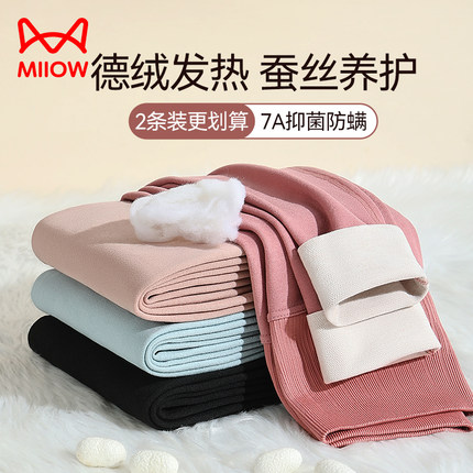 猫人德绒保暖秋裤女士2024新款含羽绒蚕丝女款冬季内穿高腰打底裤