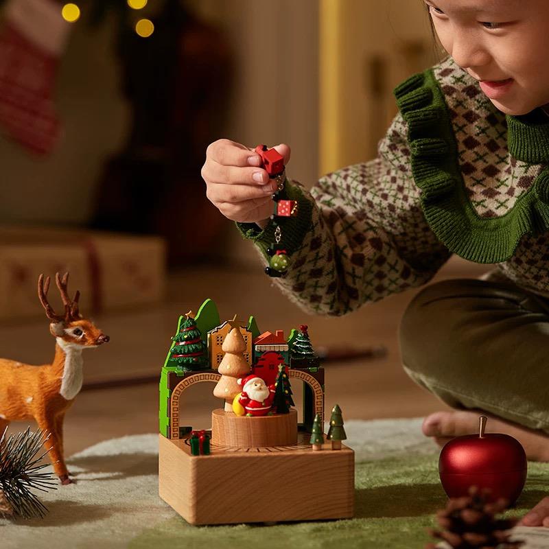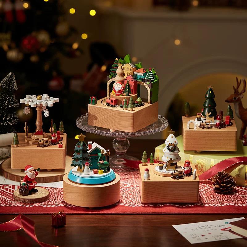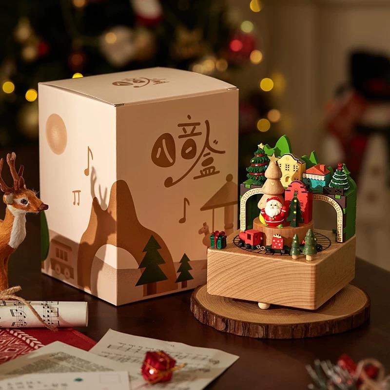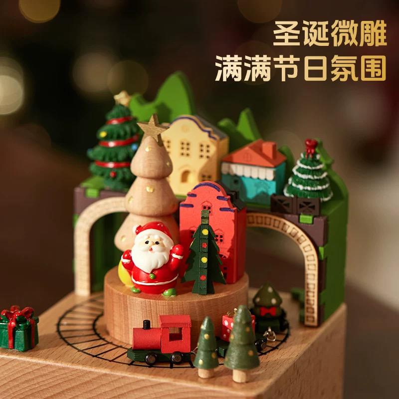 木质圣诞老人旋转小火车音乐盒八音盒生日儿童女生情侣圣诞节礼物