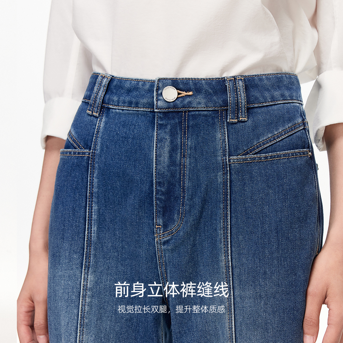 绫致Vero Moda牛仔裤女25秋冬新含棉纯色高腰显瘦微喇裤时髦复古