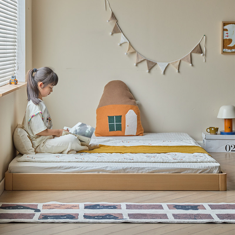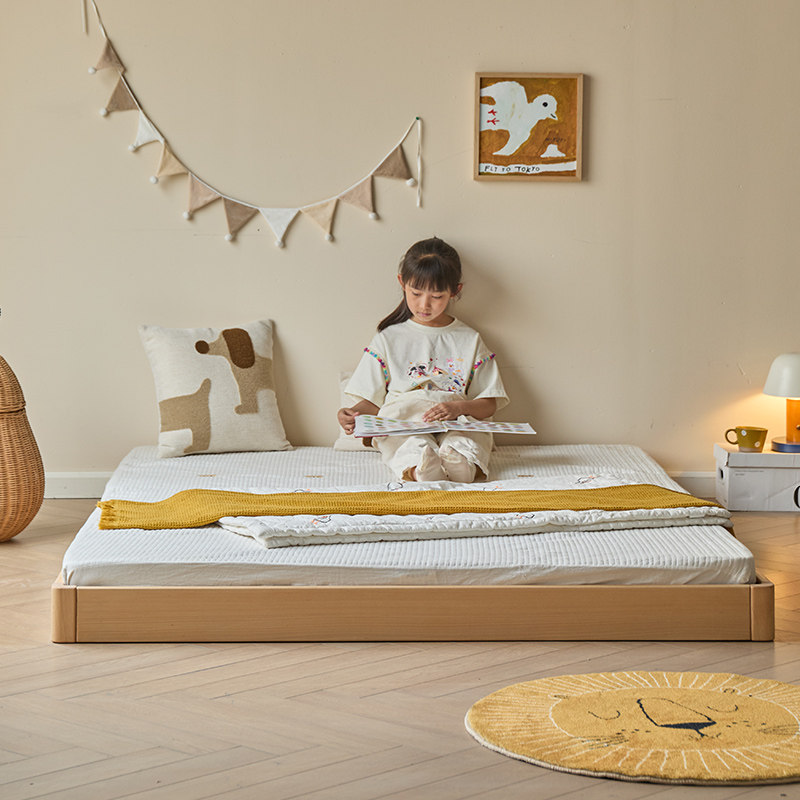 金多喜儿童地台床榉木蒙氏单人床小户型亲子拼接榻榻米婴儿落地床