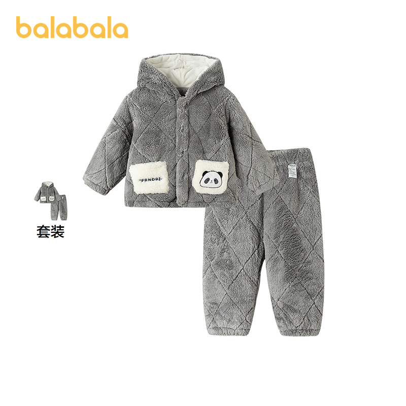 巴拉巴拉儿童家居服套装冬季加厚珊瑚绒男童睡衣加绒保暖可外出萌