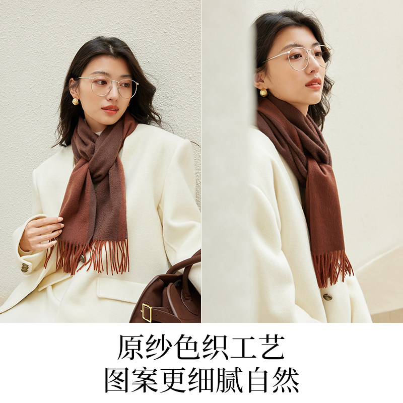 siggi双面羊绒围巾女冬季100山羊绒披肩新年红围脖生日礼物送长辈