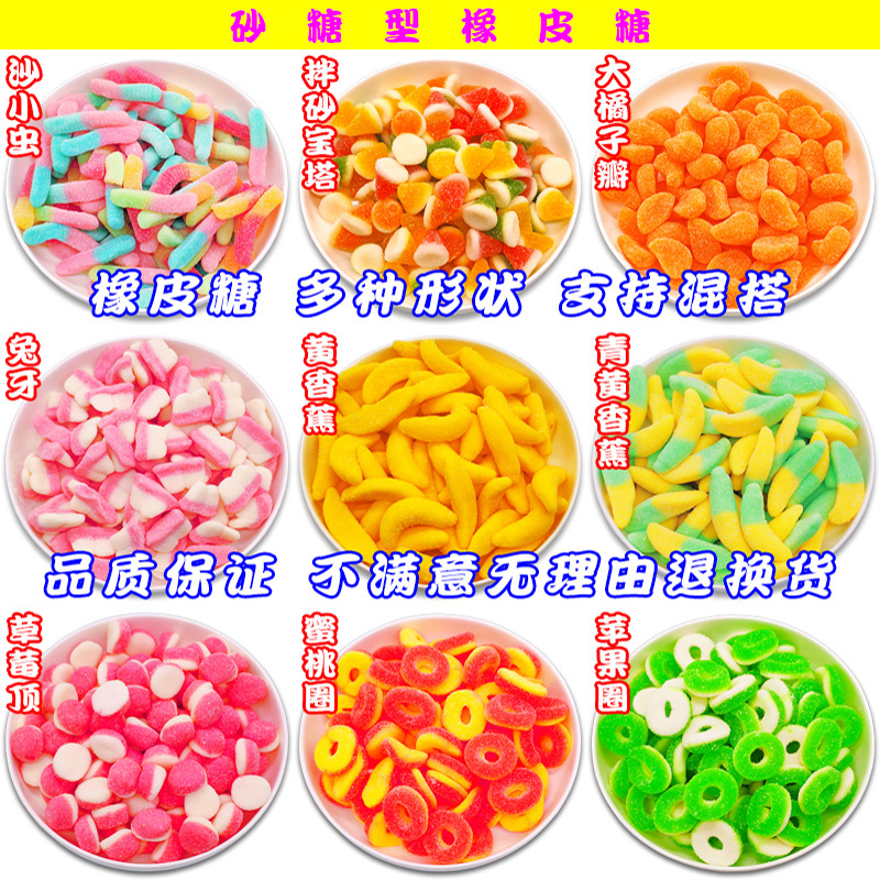 德国口味橡皮糖水果味软糖儿童qq糖果汁胶皮糖汉堡红黑梅儿时味道