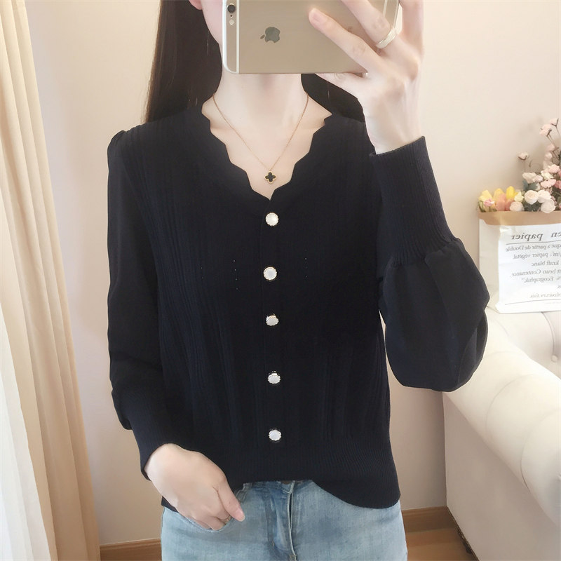 2025春季新款雪纺针织衫女薄款设计感小众冰丝v领上衣短款打底衫