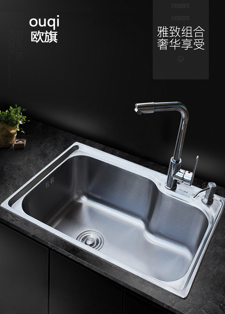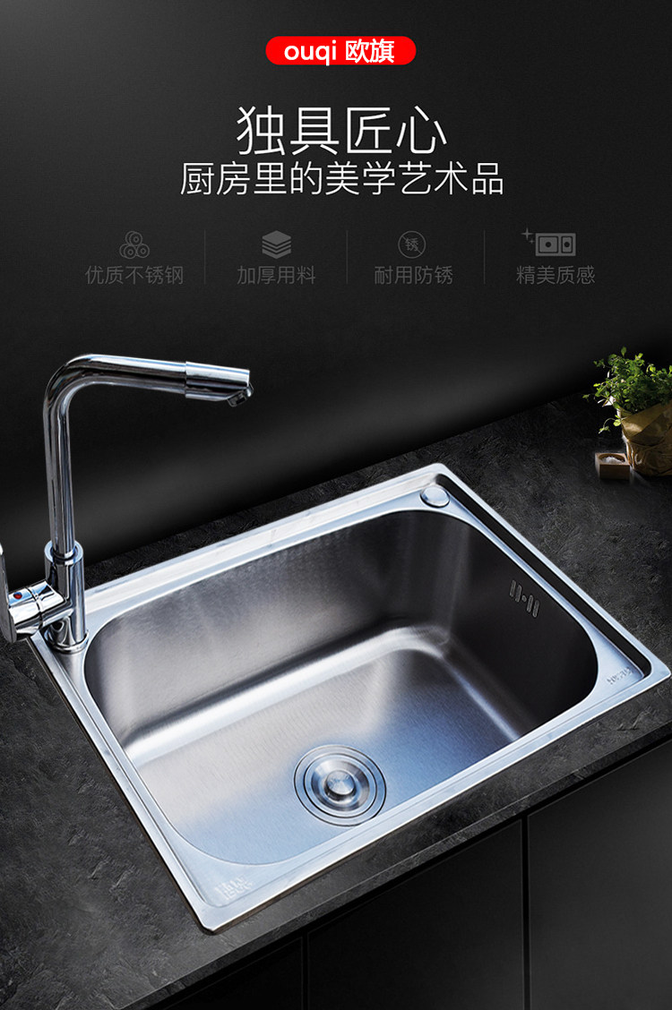 304不锈钢水槽单槽厨房洗菜盆洗碗盆单盆加厚洗碗池大单槽套装