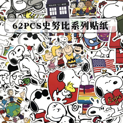 62张史努比平板笔记本滑板水杯电脑手机壳行李箱保温杯手账贴纸