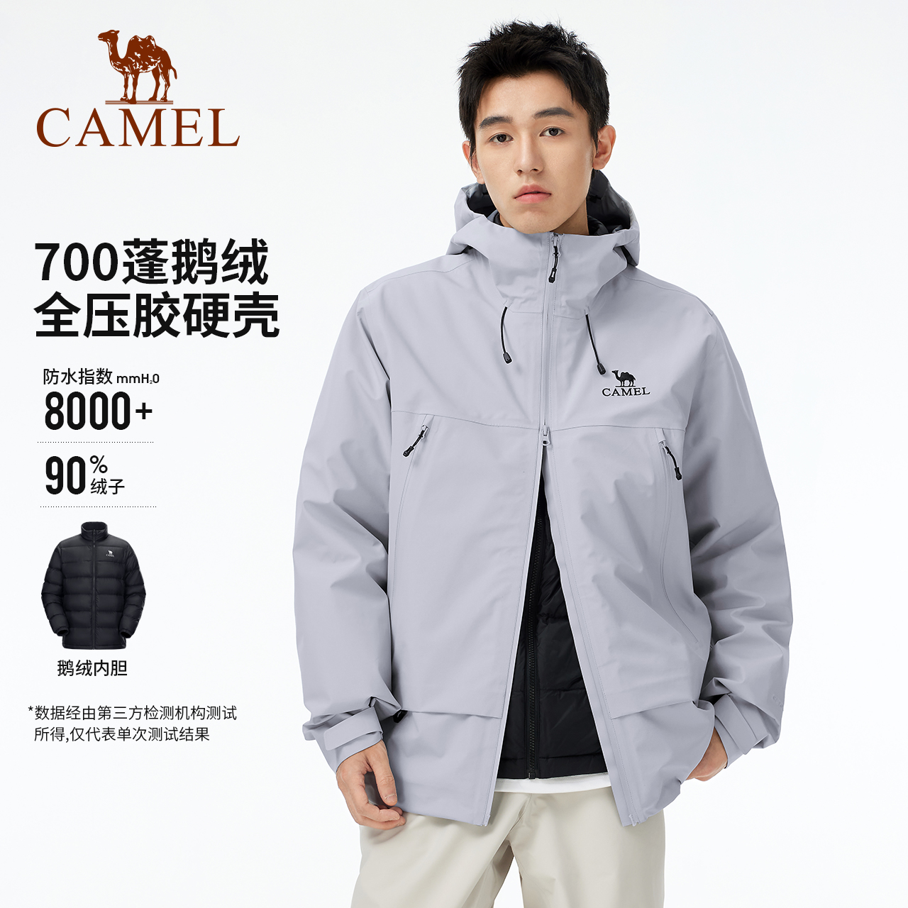 骆驼男装冲锋衣男款户外三合一夹克外套内胆羽绒硬壳登山防风防水