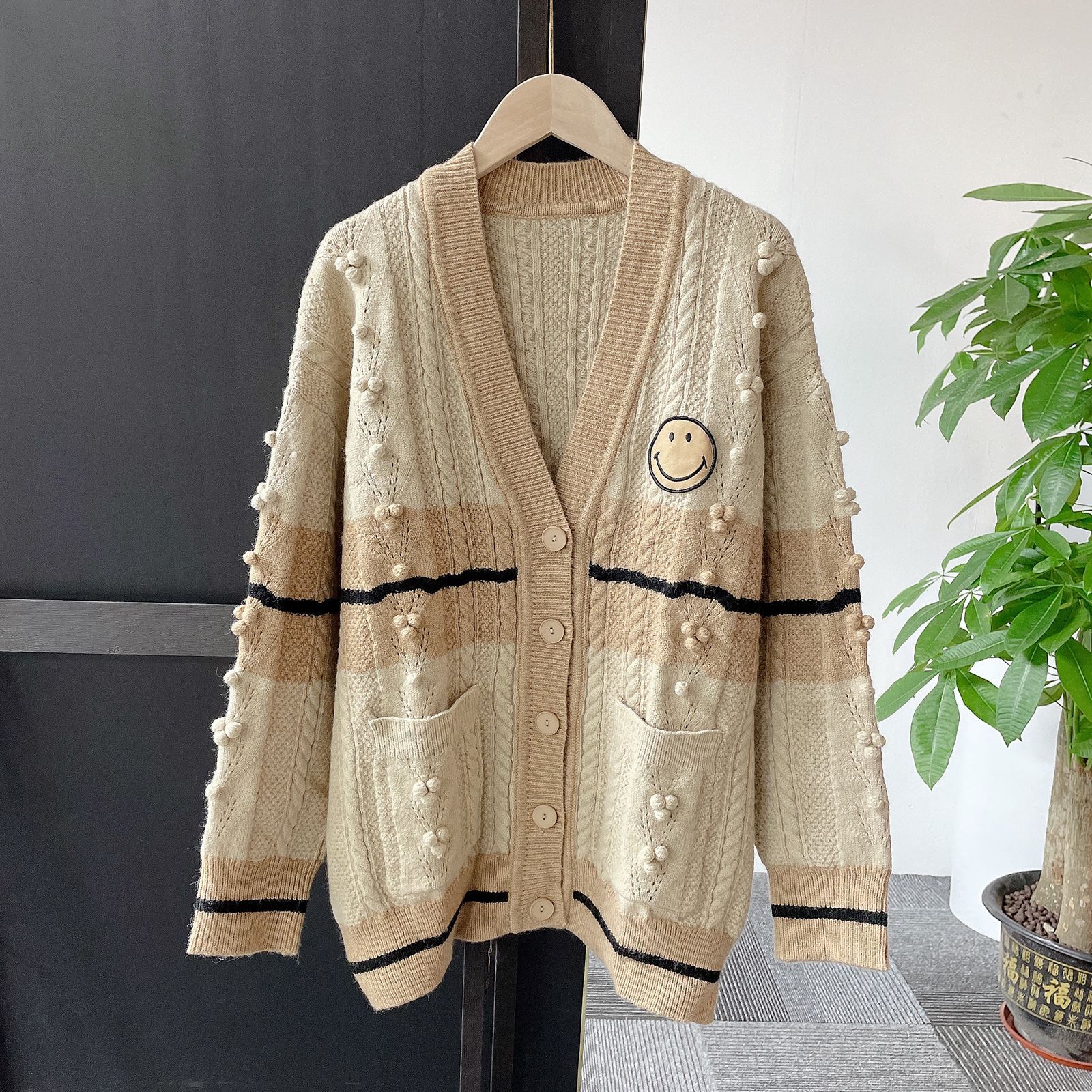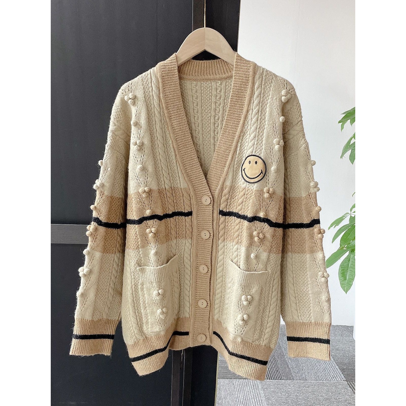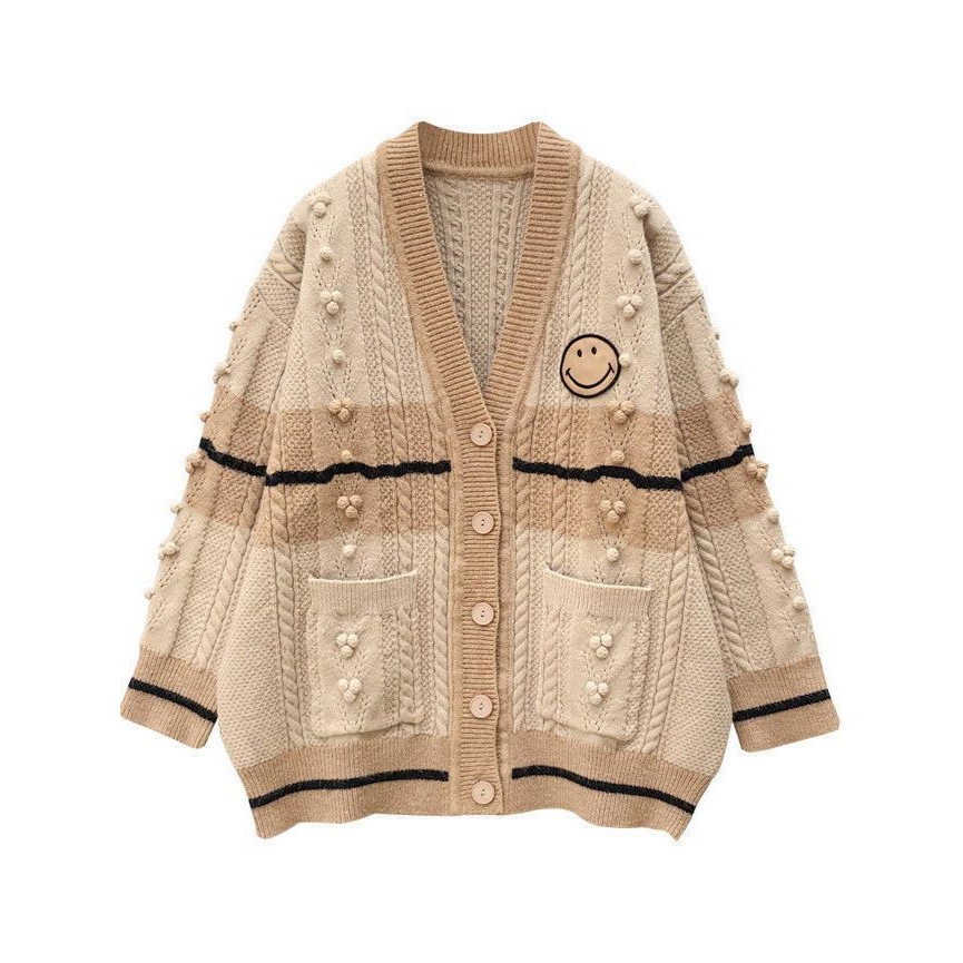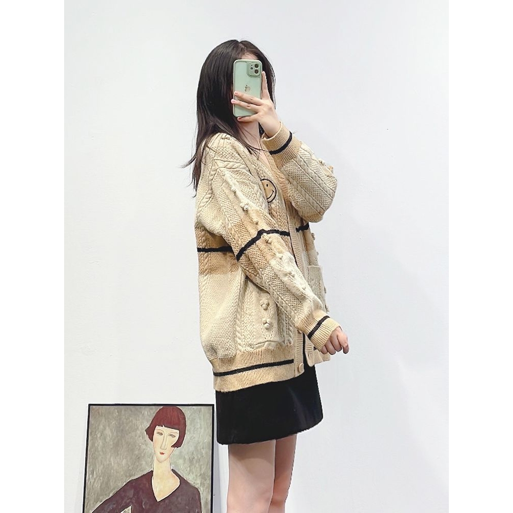 大码女装2024秋冬新款法式小众学院风笑脸针织开衫外套设计感上衣