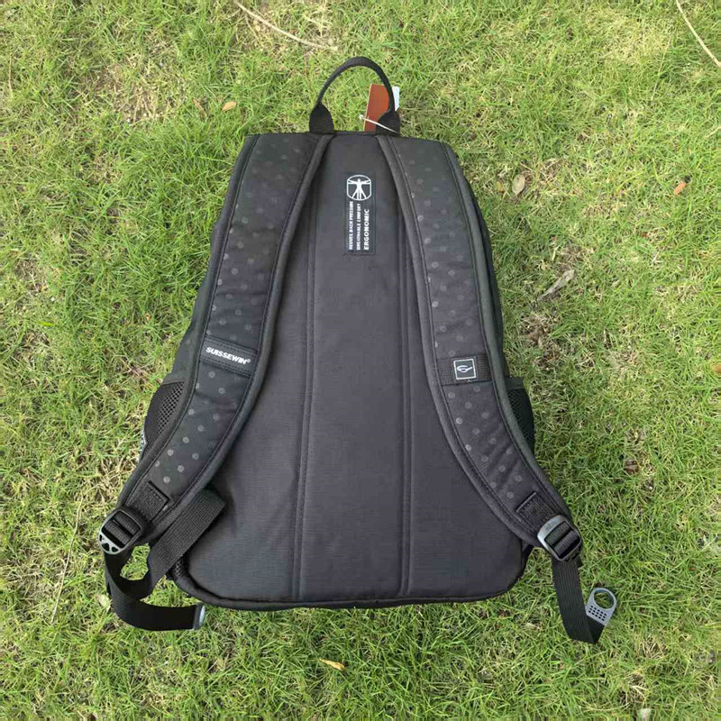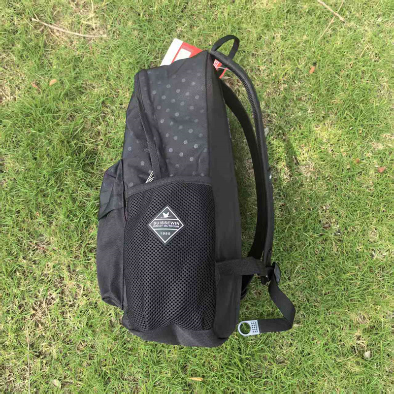 SUISSEWIN黑色休闲双肩包耐用防水旅行电脑背包小学生中学生书包