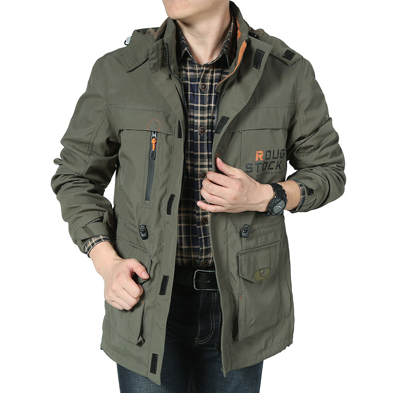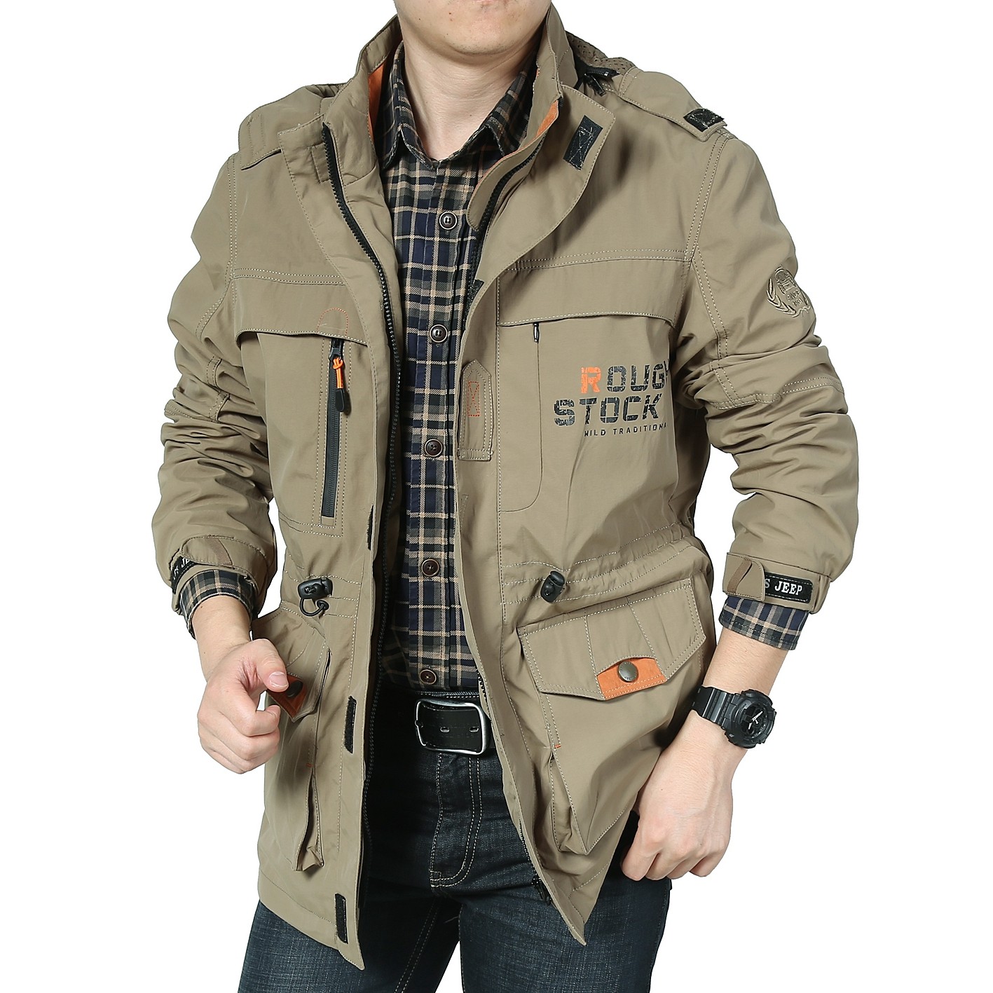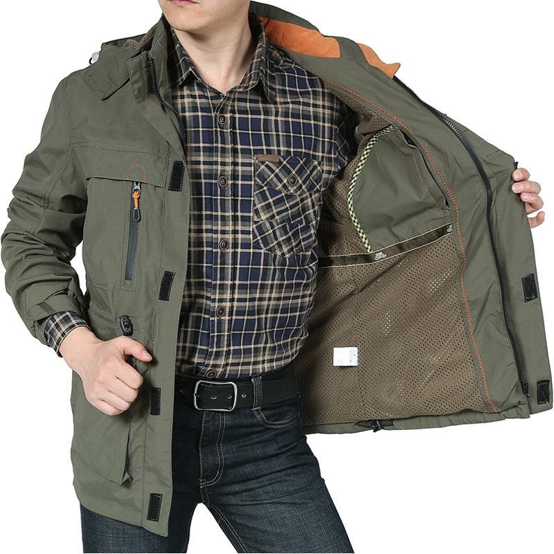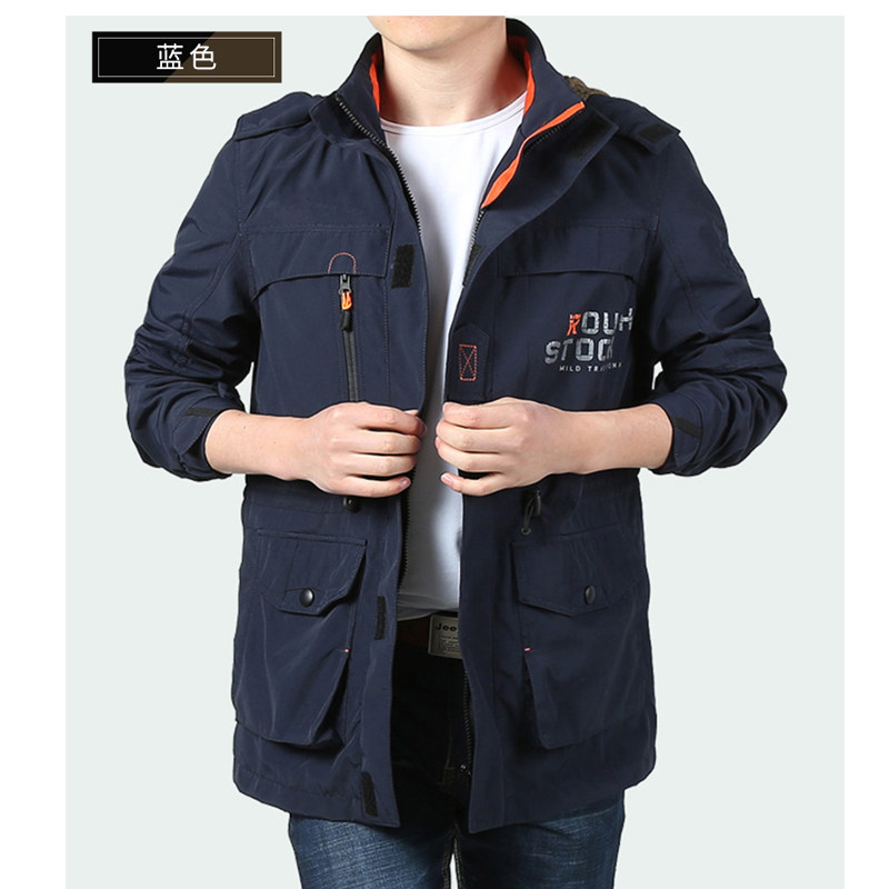 夹克外套男春秋季中青年休闲中长款宽松大码户外运动冲锋夹克上衣