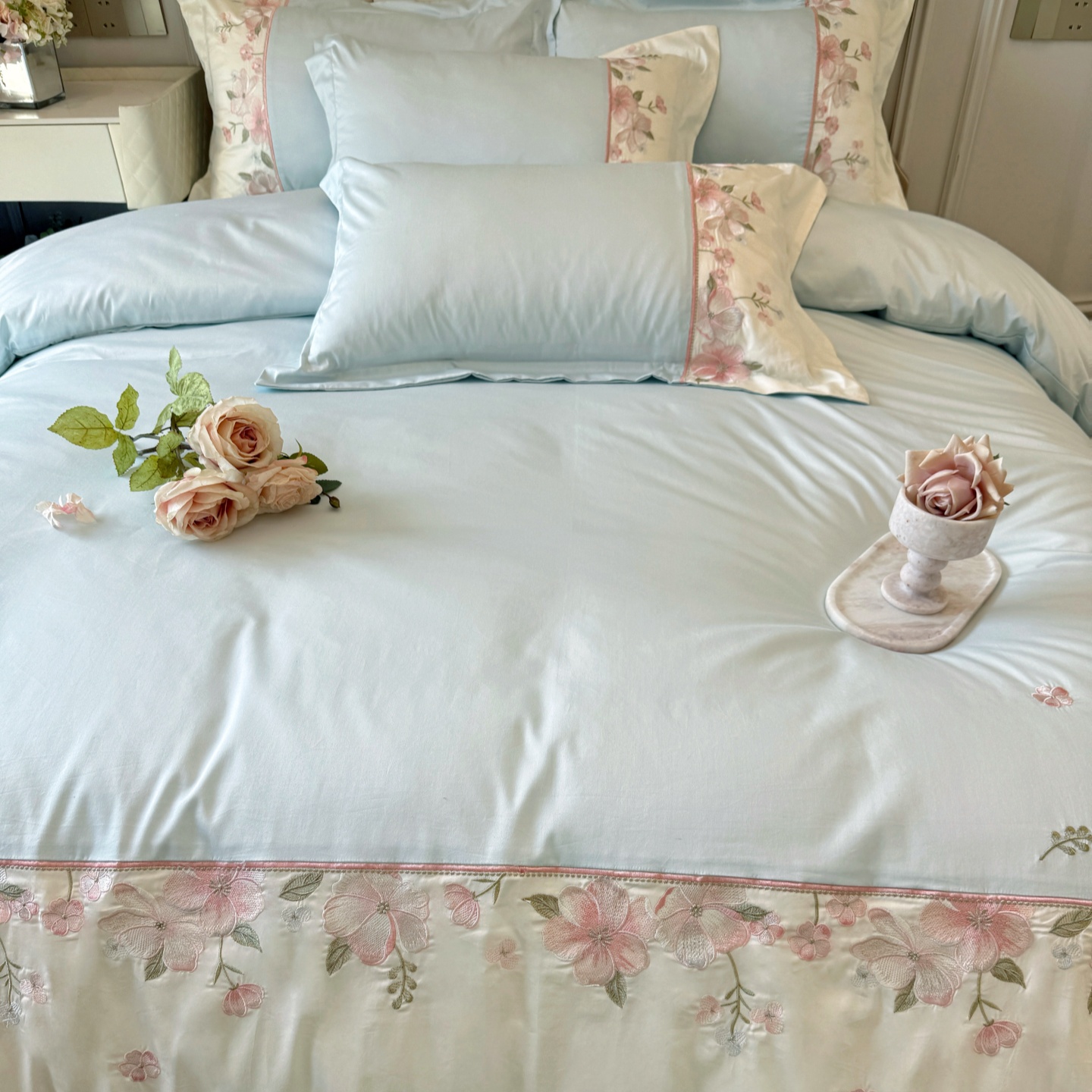 秋冬季A类100支全棉磨毛加厚四件套纯棉轻奢刺绣被套床单床上用品