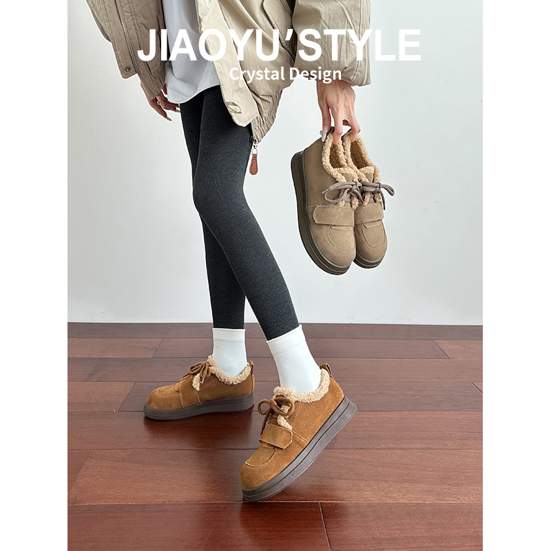 真皮~骄屿毛毛绵鞋全包加绒勃肯鞋2025冬季厚底一脚蹬懒人雪地靴