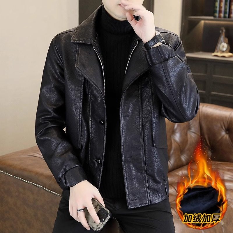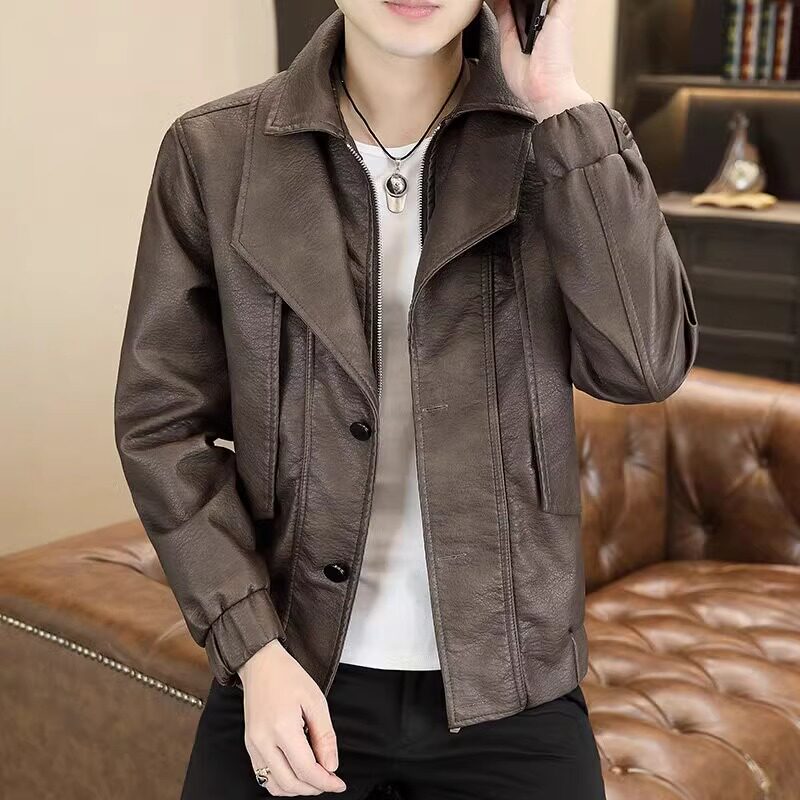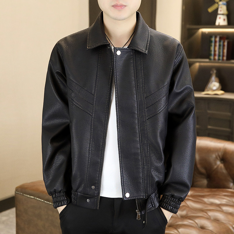 真皮皮衣外套男春秋新款潮牌修身帅气假两件休闲高端男士薄款夹克