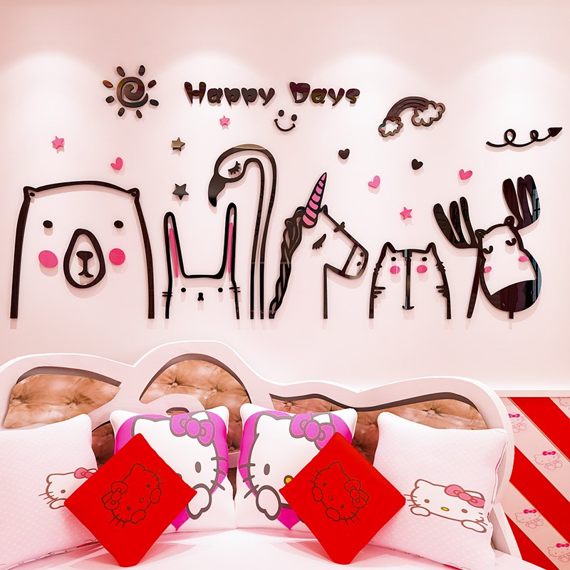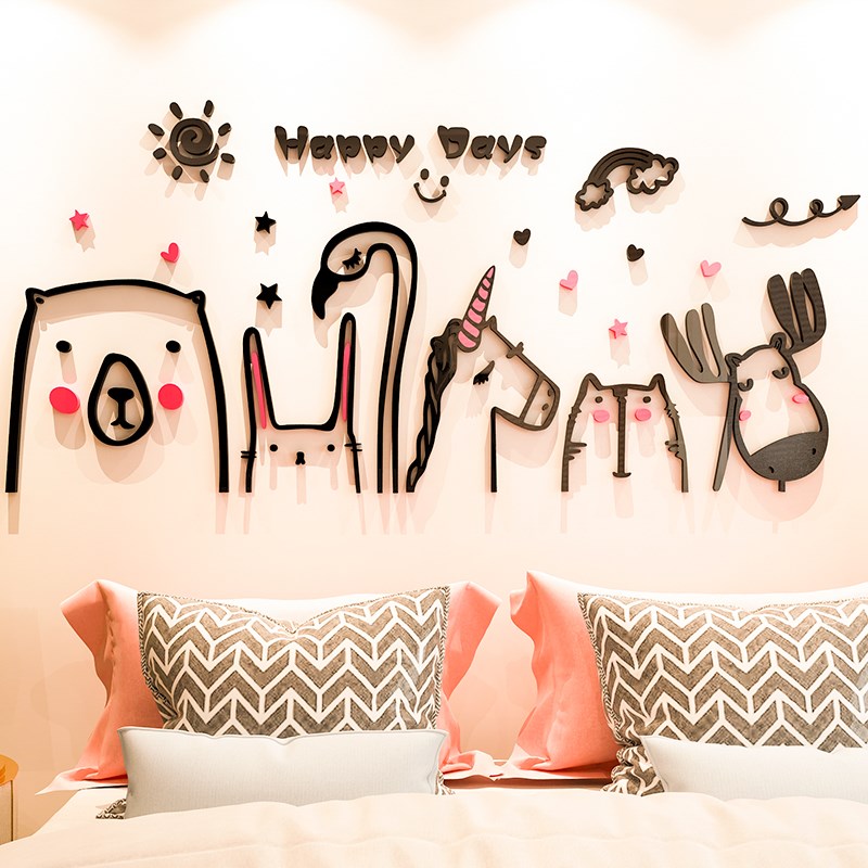 速发动物风卧室温馨客厅沙发背景墙镜面立体墙贴画自粘装饰