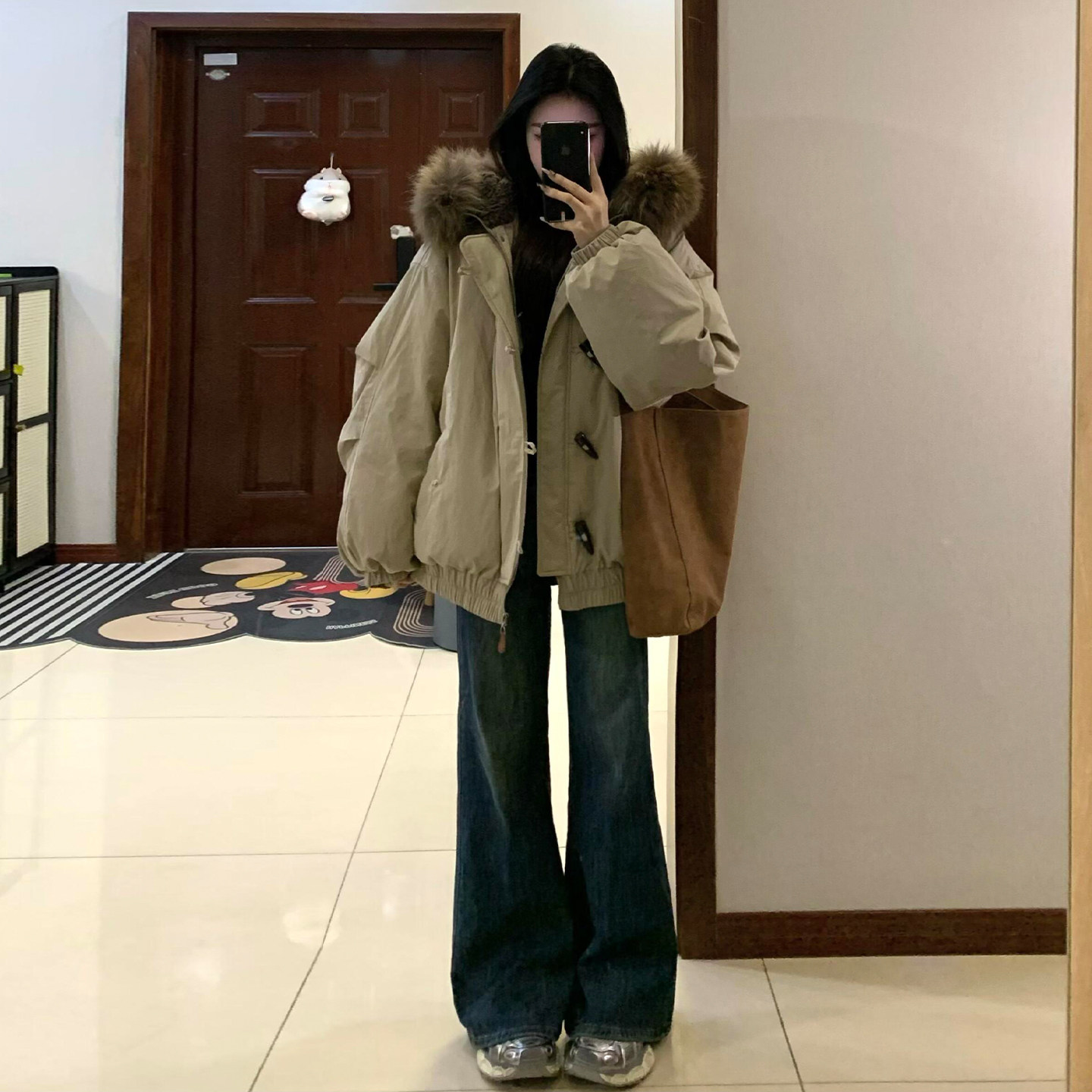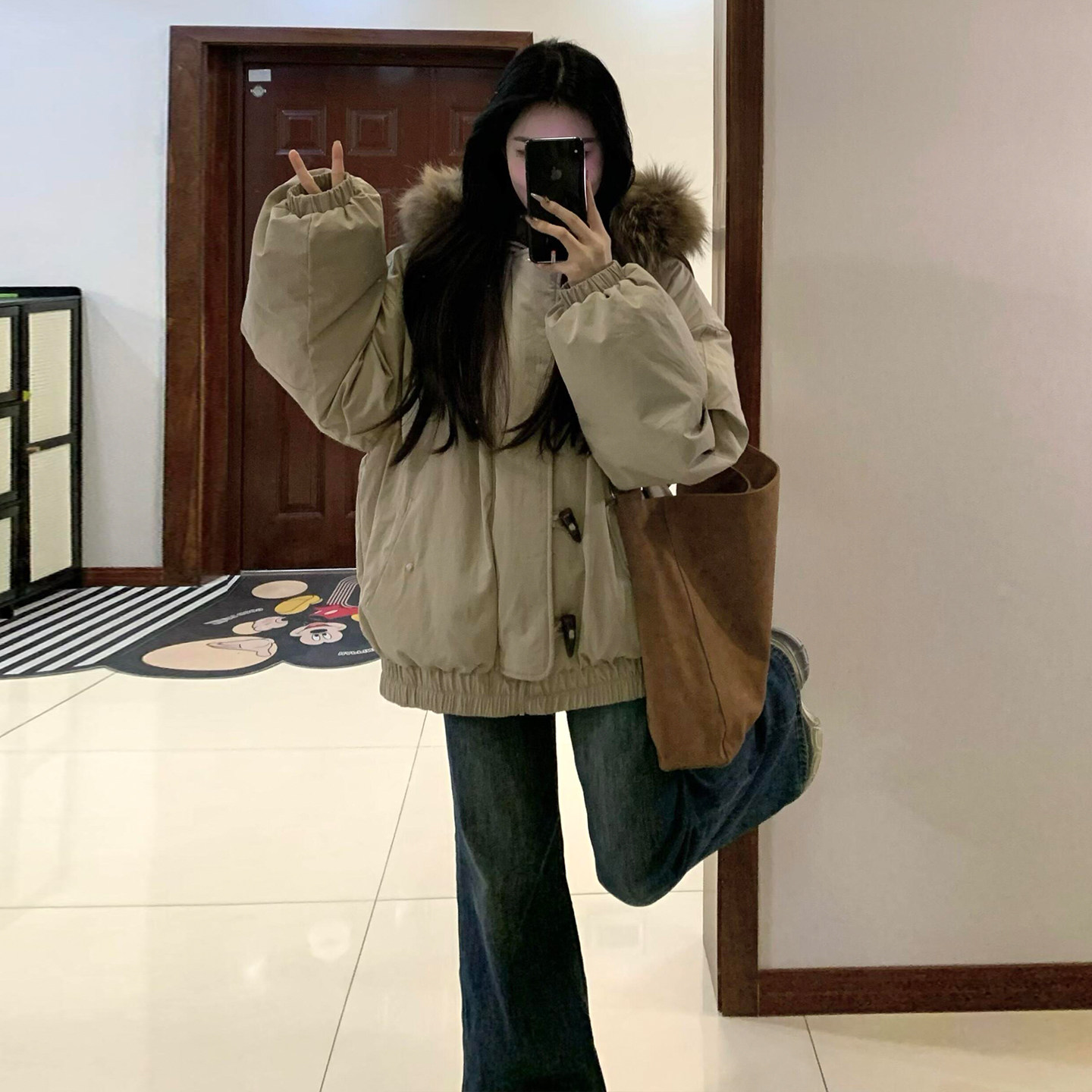 特大码女装胖mm美式高街毛领夹棉外套女冬季洋气百搭加厚羽绒棉服